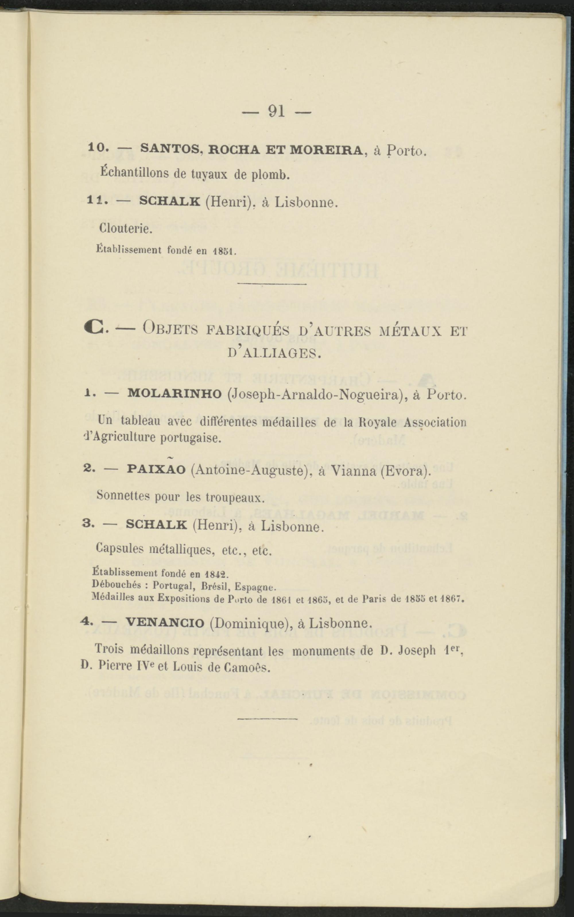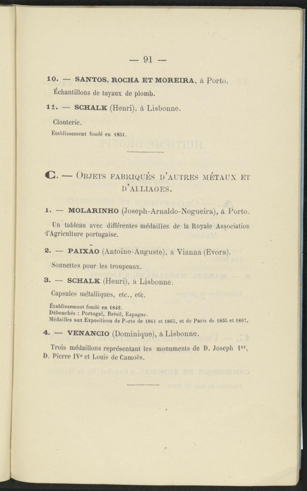 11. — SCHALK (Henri), à Lisbonne.