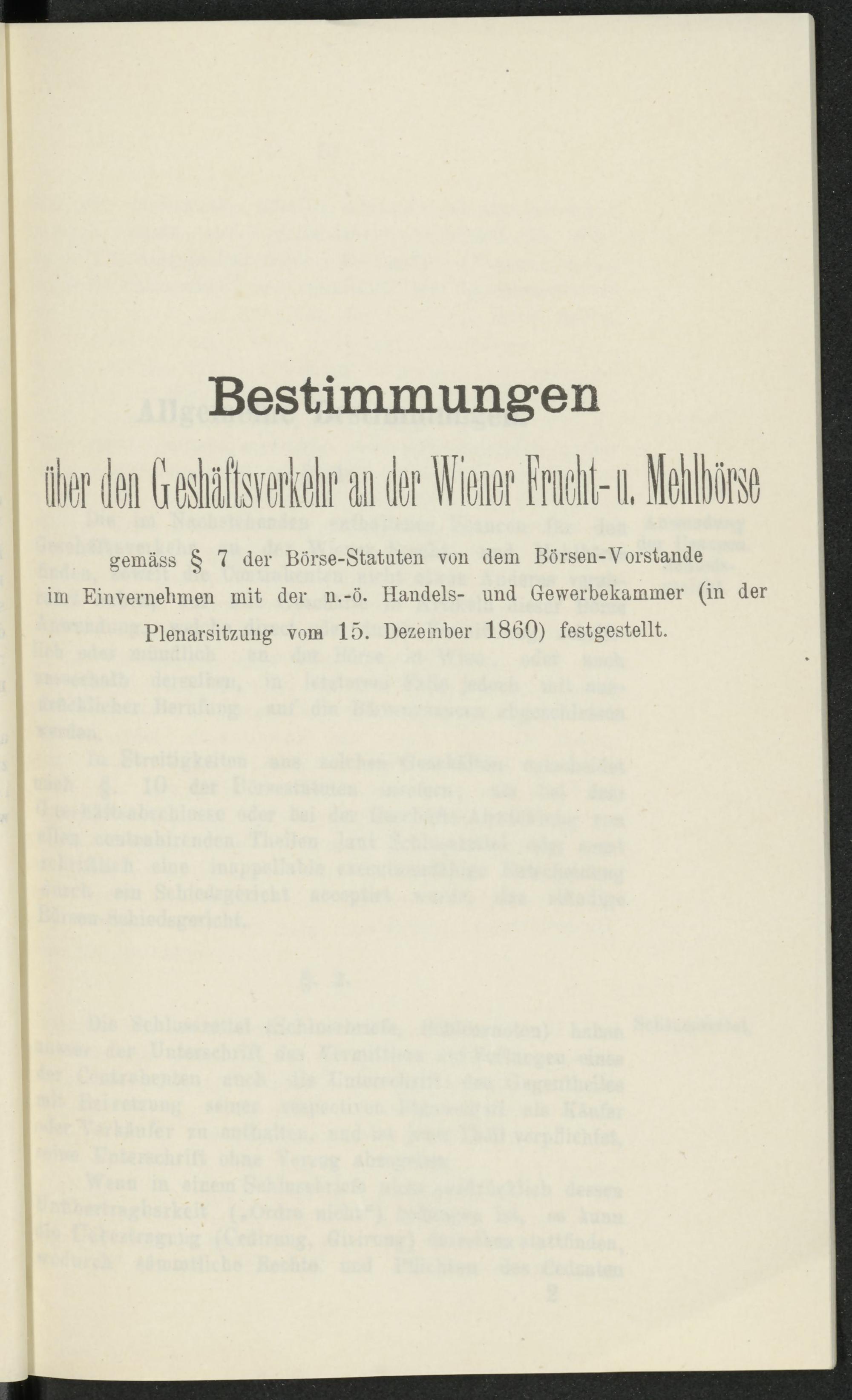 gemäss § 7 der Börse-Statuten von dem Börsen-Vorstande im Einvernehmen mit der n.-ö. Handels- und Gewerbekammer (in der Plenarsitzung vom 15. Dezember 1860) festgestellt.
