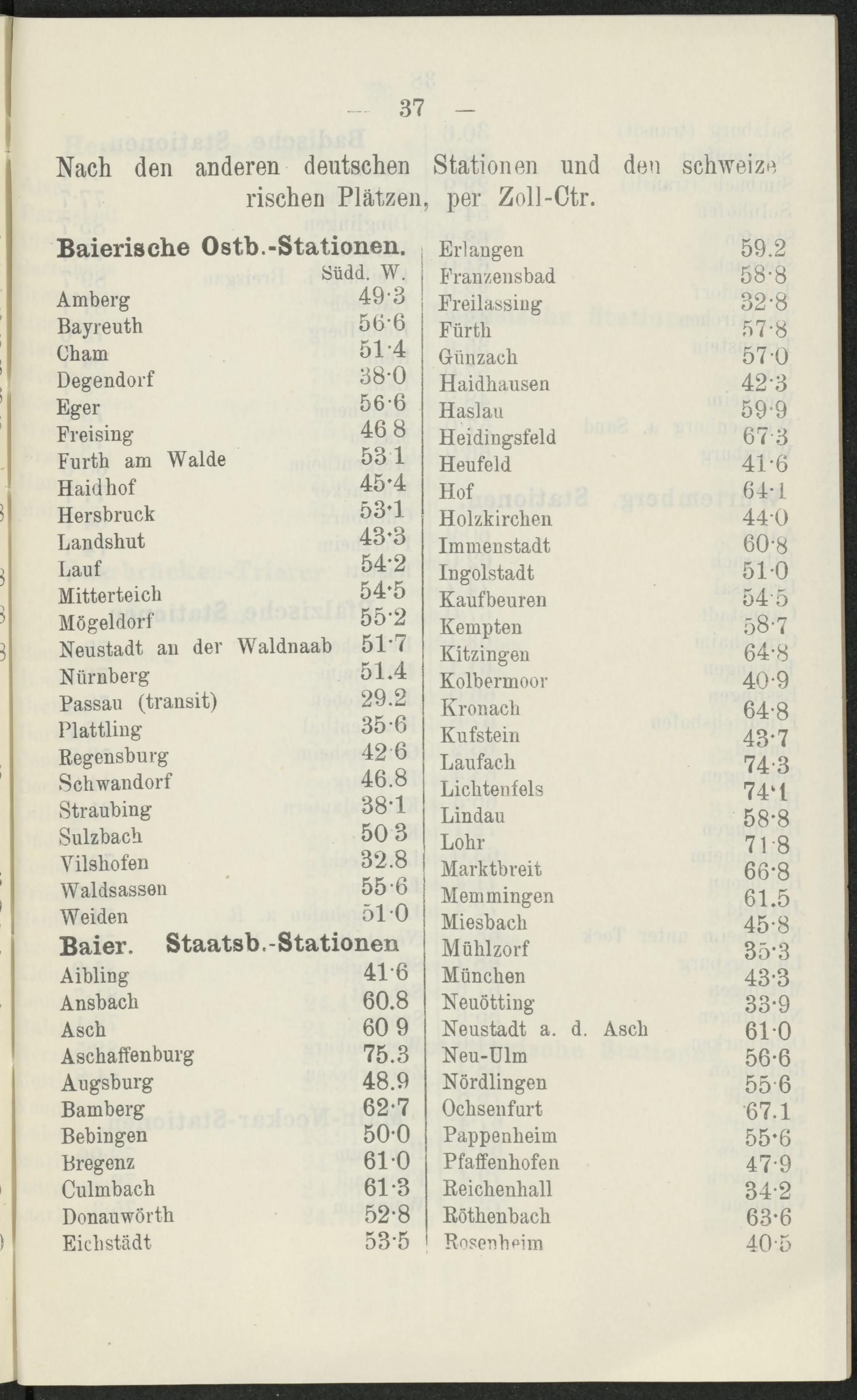 Nach den anderen deutschen Stationen und den schAveize rischen Plätzen, per Zoll-Ctr.