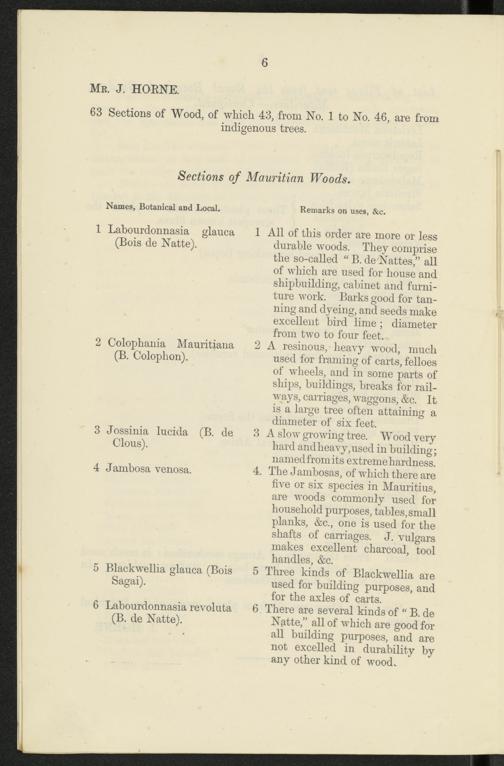 A slow growing tree. Wood very hard andlieavy,used in building; named from its extreme hardness. The Jambosas, of which there are five or six species in Mauritius, are woods commonly used for household purposes, tables, small planks, &e., one is used for the shafts of carriages. J. vulgars makes excellent charcoal, tool handles, &c.