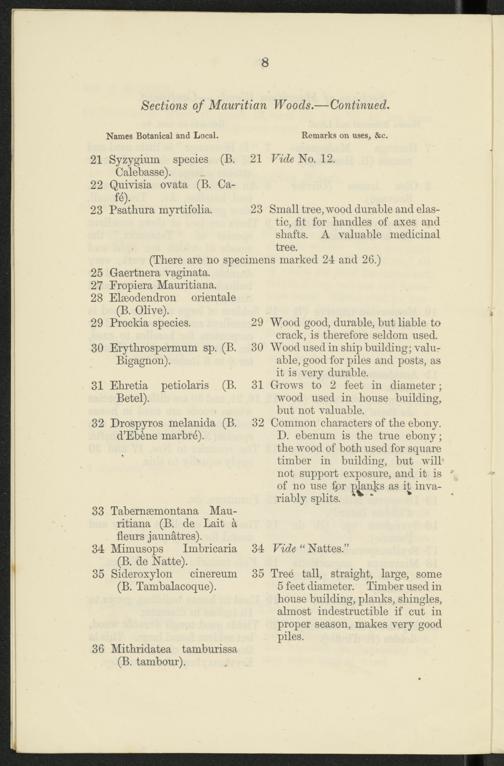 D. ebenum is the true ebony; the wood of both used for square timber in building, but will not support exposure, and it is of no use for planks as it invariably splits. *