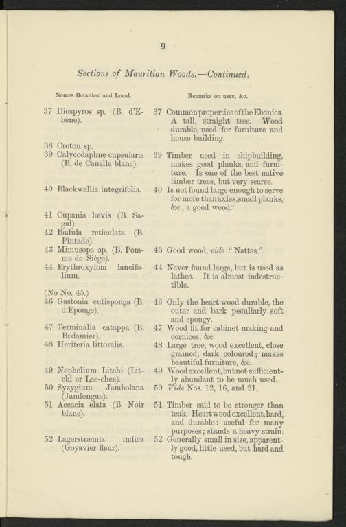 Large tree, wood excellent, close grained, dark coloured; makes beautiful furniture, &c.