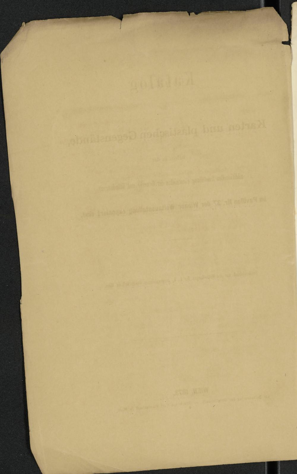 Katalog der Karten und plastischen Gegenstände, welche in der additionellen Ausstellung (Geschichte der Gewerbe und Erfindungen) im Pavillon Nr. 37 der Wiener Weltausstellung exponiert sind.