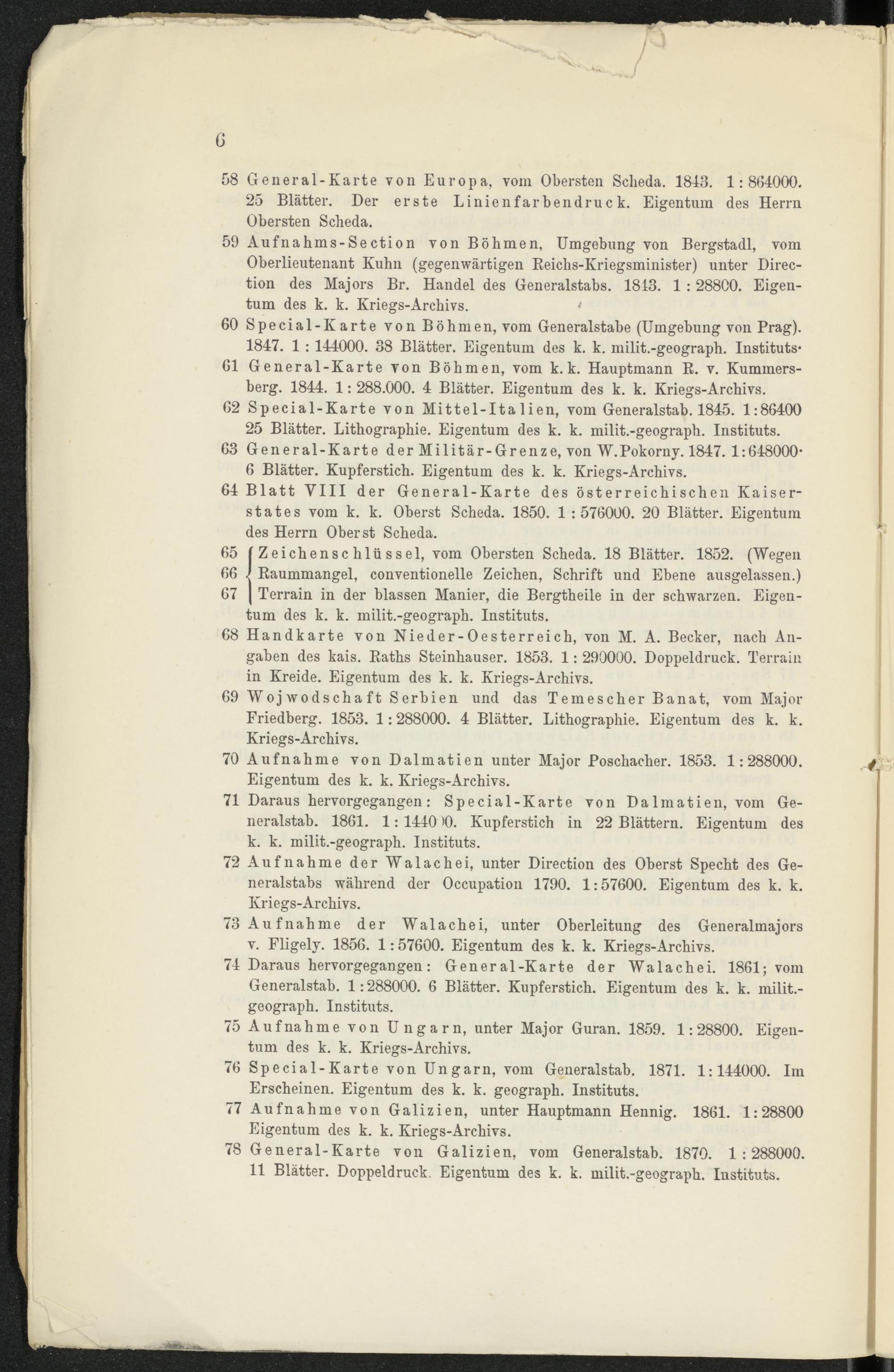 64 Blatt VIII der General-Karte des österreichischen Kaiserstat e s vom k. k. Oberst Scheda. 1850. 1 : 576000. 20 Blätter. Eigentum des Herrn Oberst Scheda.