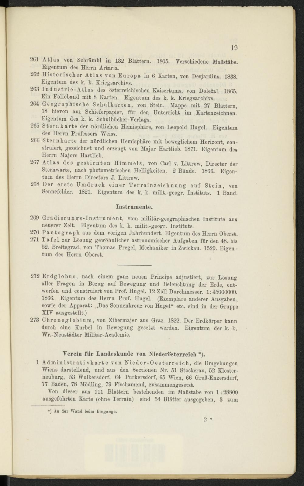 267 Atlas des gestirnten Himmels, von Carl v. Littrow, Director der Sternwarte, nach photometrischen Helligkeiten, 2 Bände. 1866. Eigentum des Herrn Directors J. Littrow.