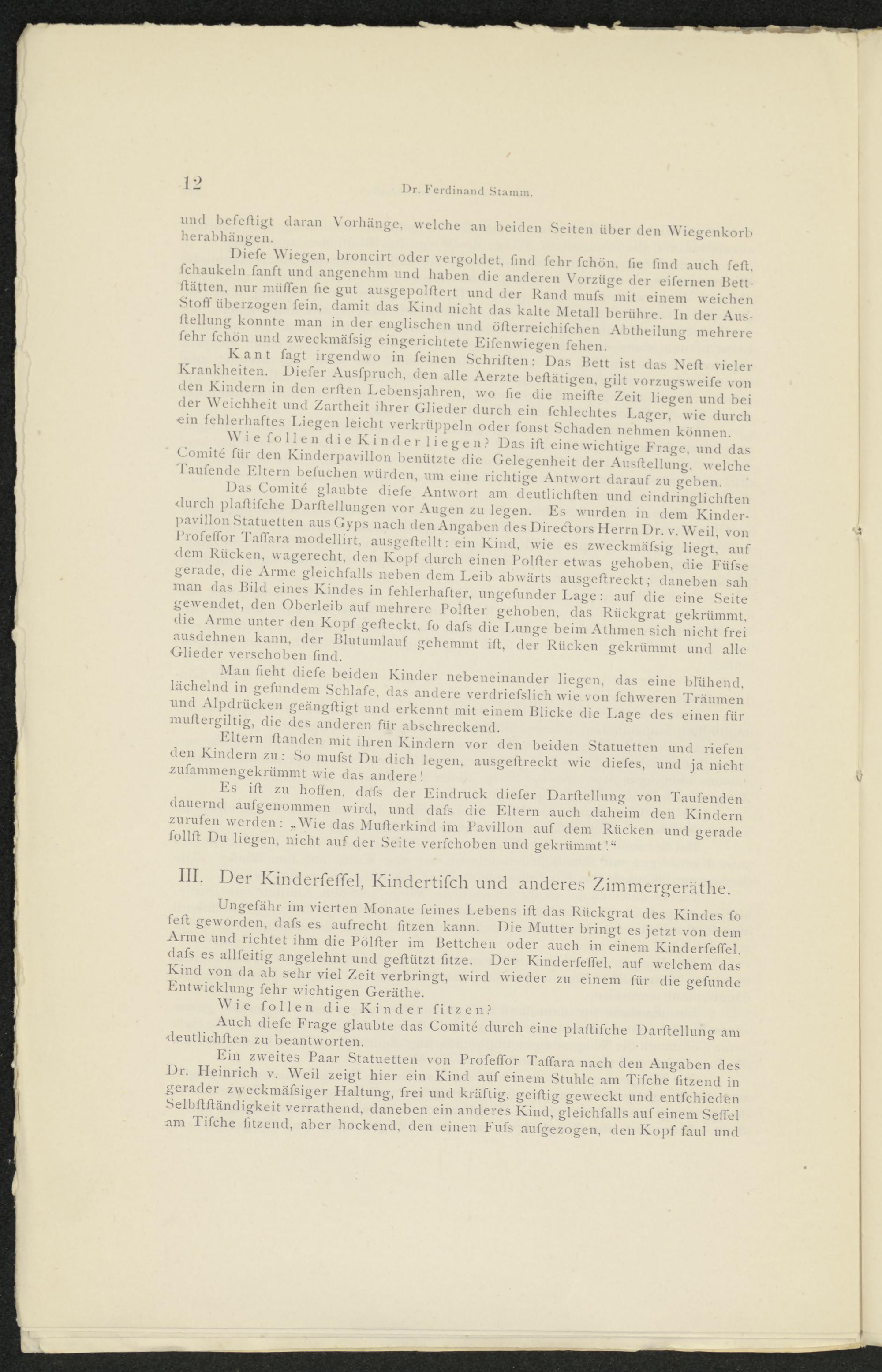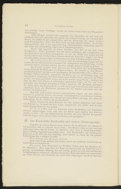 Es ih zu hoffen, dafs der Eindruck diefer Darheilung von Taufenden dauernd aufgenommen wird, und dafs die Eltern auch daheim den Kindern zurufen werden : „Wie das Muherkind im Pavillon auf dem Rücken und gerade follh Du liegen, nicht auf der Seite verfchoben und gekrümmt!“