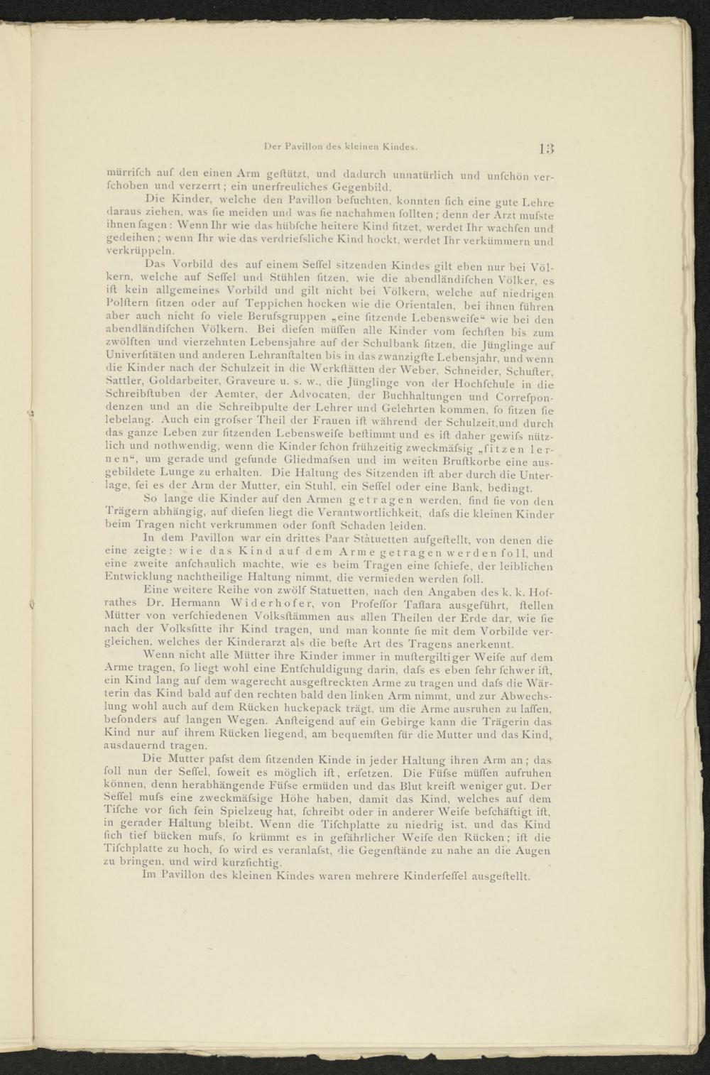 Eine weitere Reihe von zwölf Statuetten, nach den Angaben des k. k. Ilof- rathes Dr. Hermann Widerhofer, von Profeffor Taflara ausgeführt, dellen Mütter von verfchiedenen Volksdämmen aus allen Theilen der Erde dar, wie fie nach der Volksfitte ihr Kind tragen, und man konnte de mit dem Vorbilde vergleichen, welches der Kinderarzt als die bede Art des Tragens anerkennt.