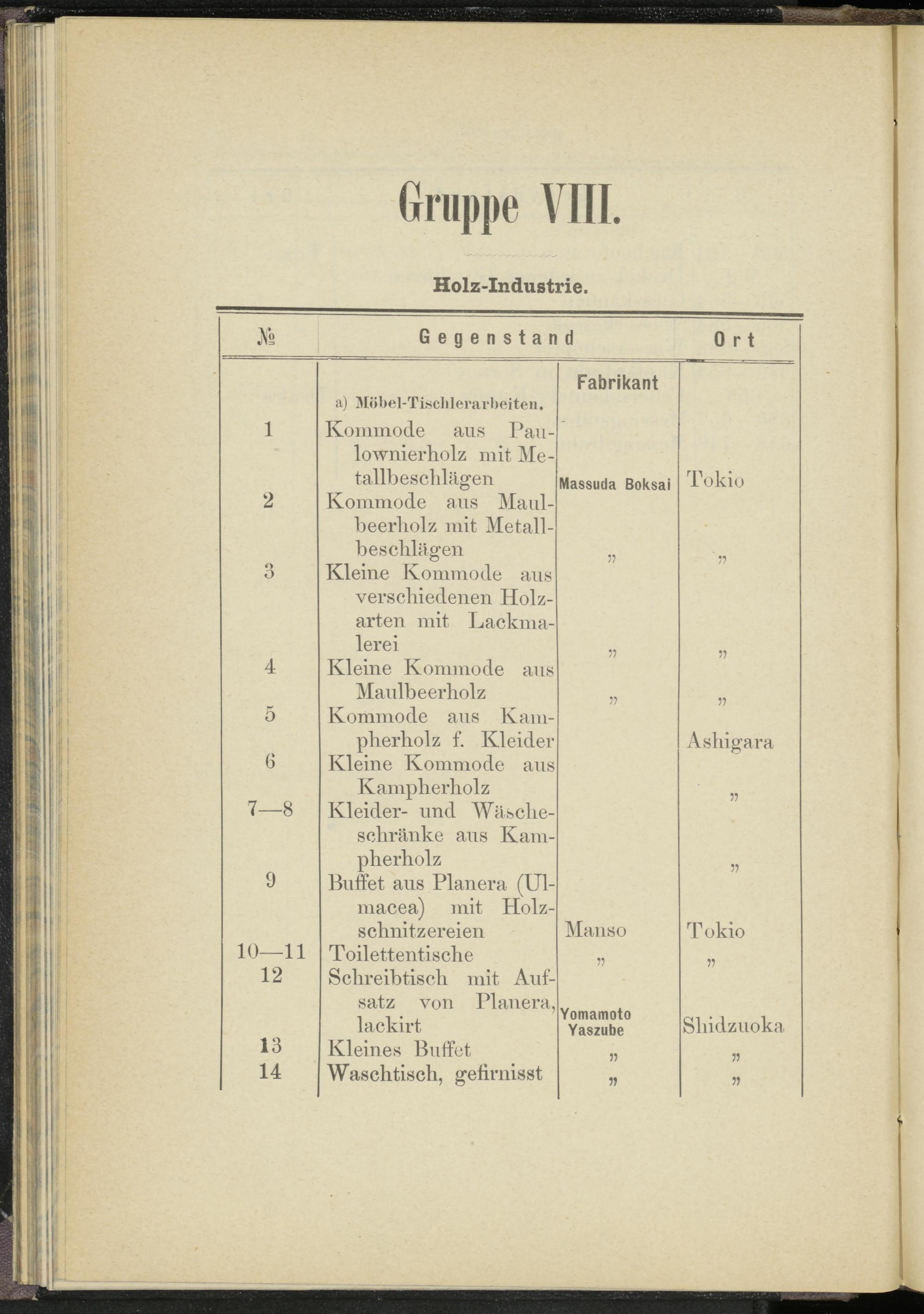 a) Möbel-Tischlerarbeiten.