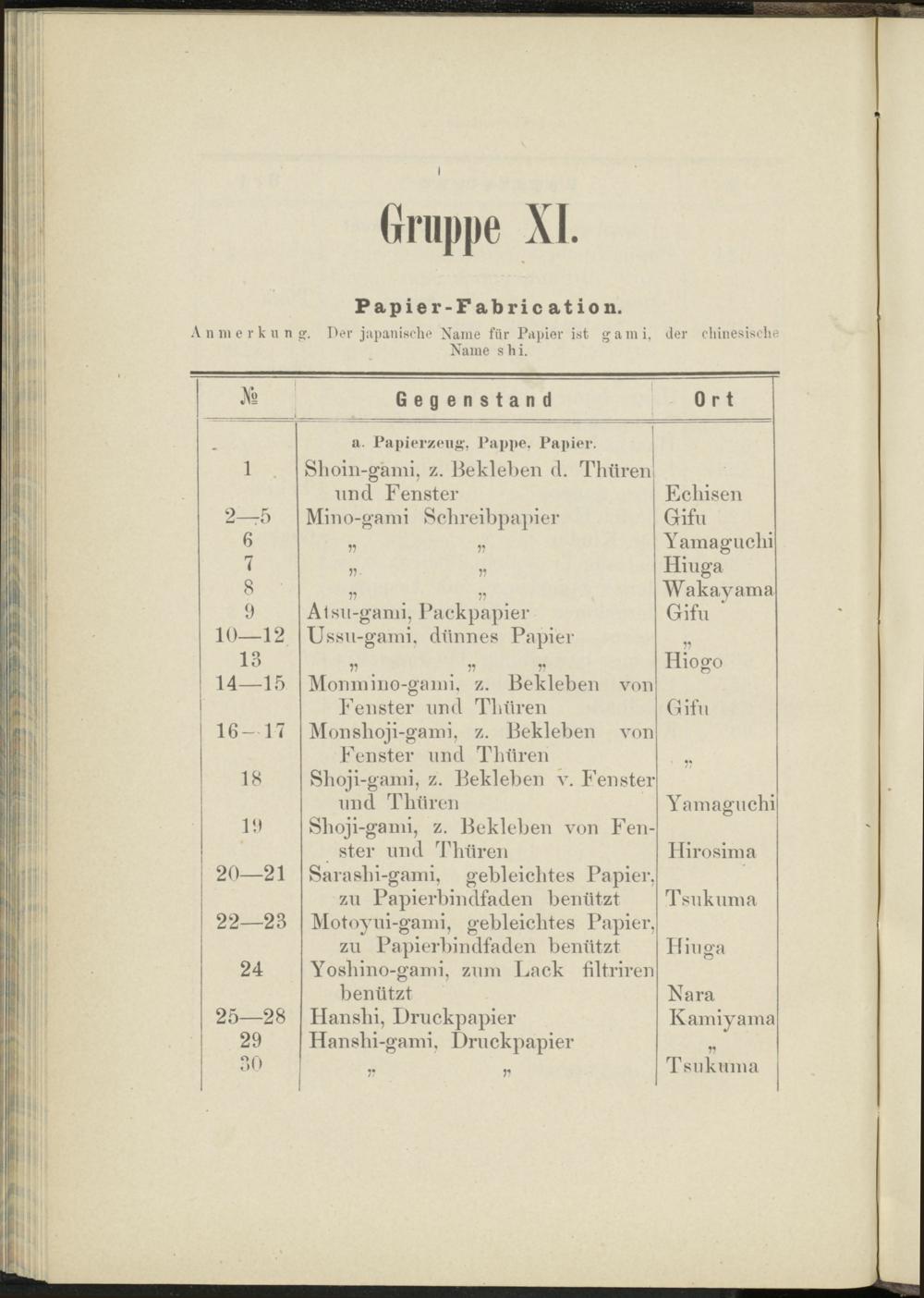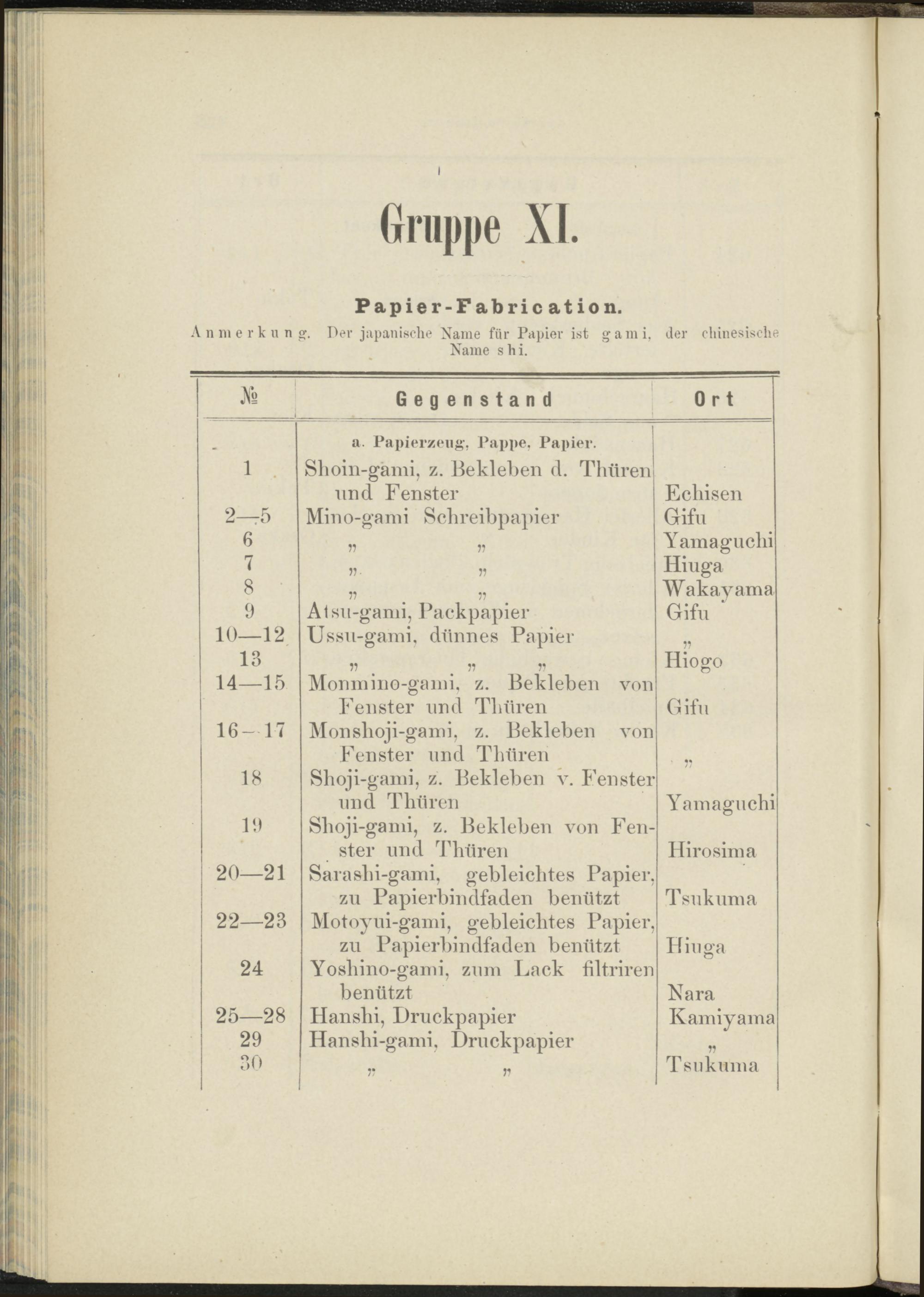 Anmerkung. Der japanische Name für Papier ist gami, der chinesische
