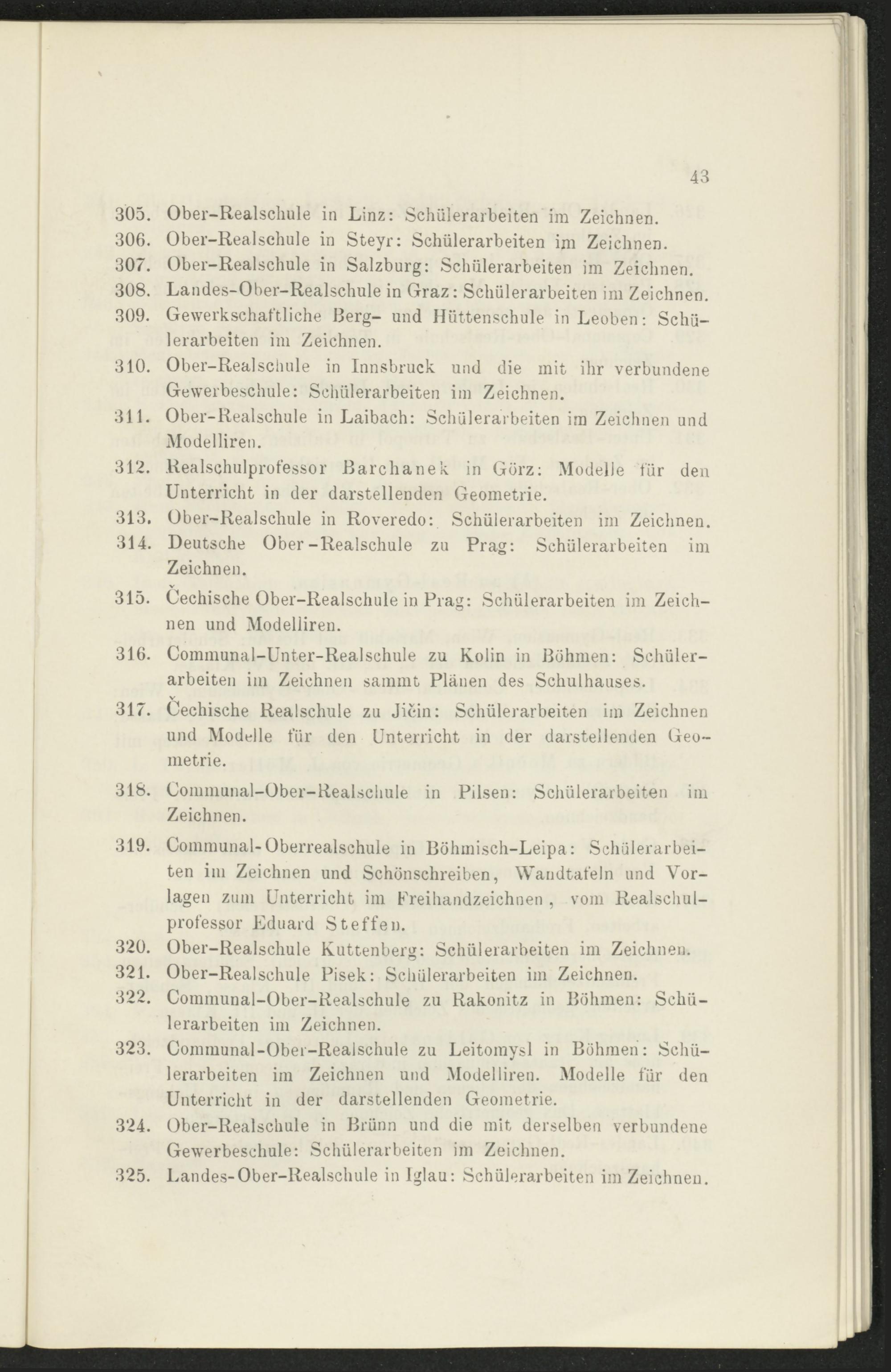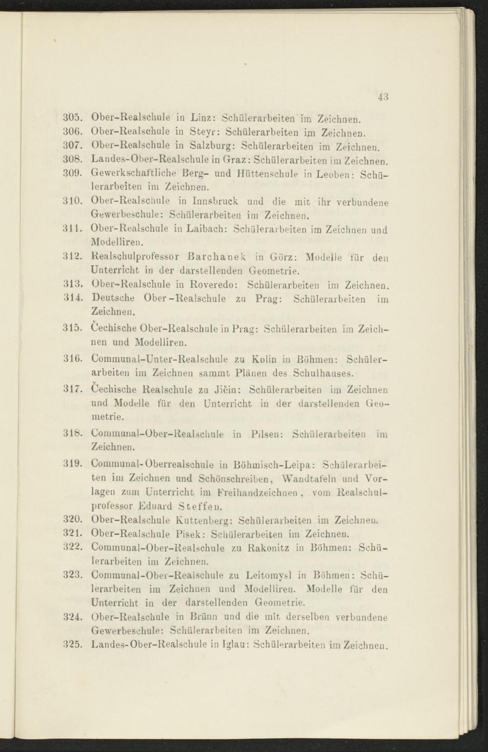315. Oechische Ober-Realschule in Prag: Schülerarbeiten im Zeichnen und Modelliren.