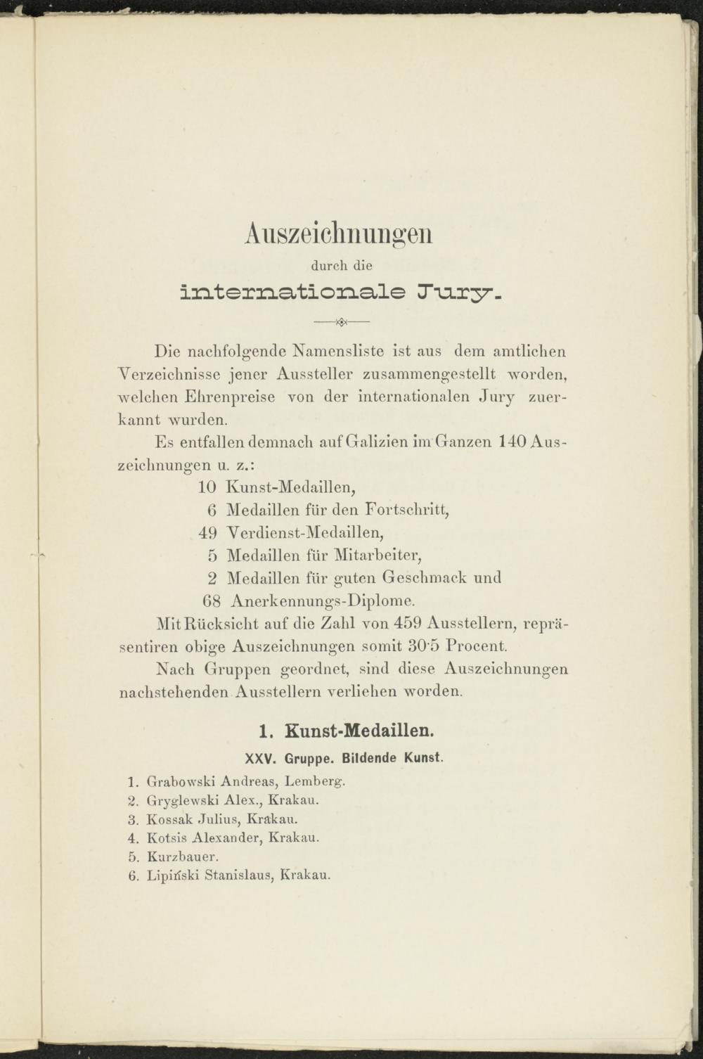 Es entfallen demnach auf Galizien im Ganzen 140 Auszeichnungen u. z.: