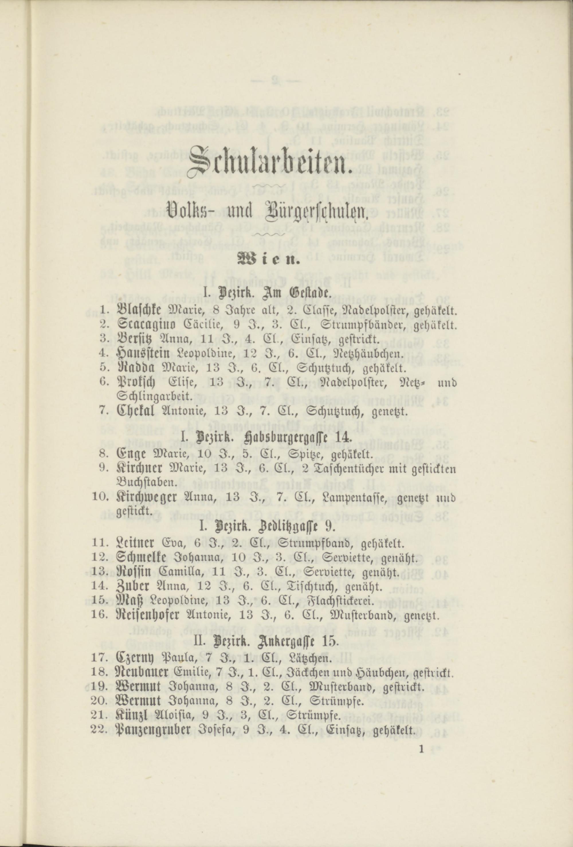 21. Künzl Aloisia, 9 I., 3, Cl., Strümpfe.