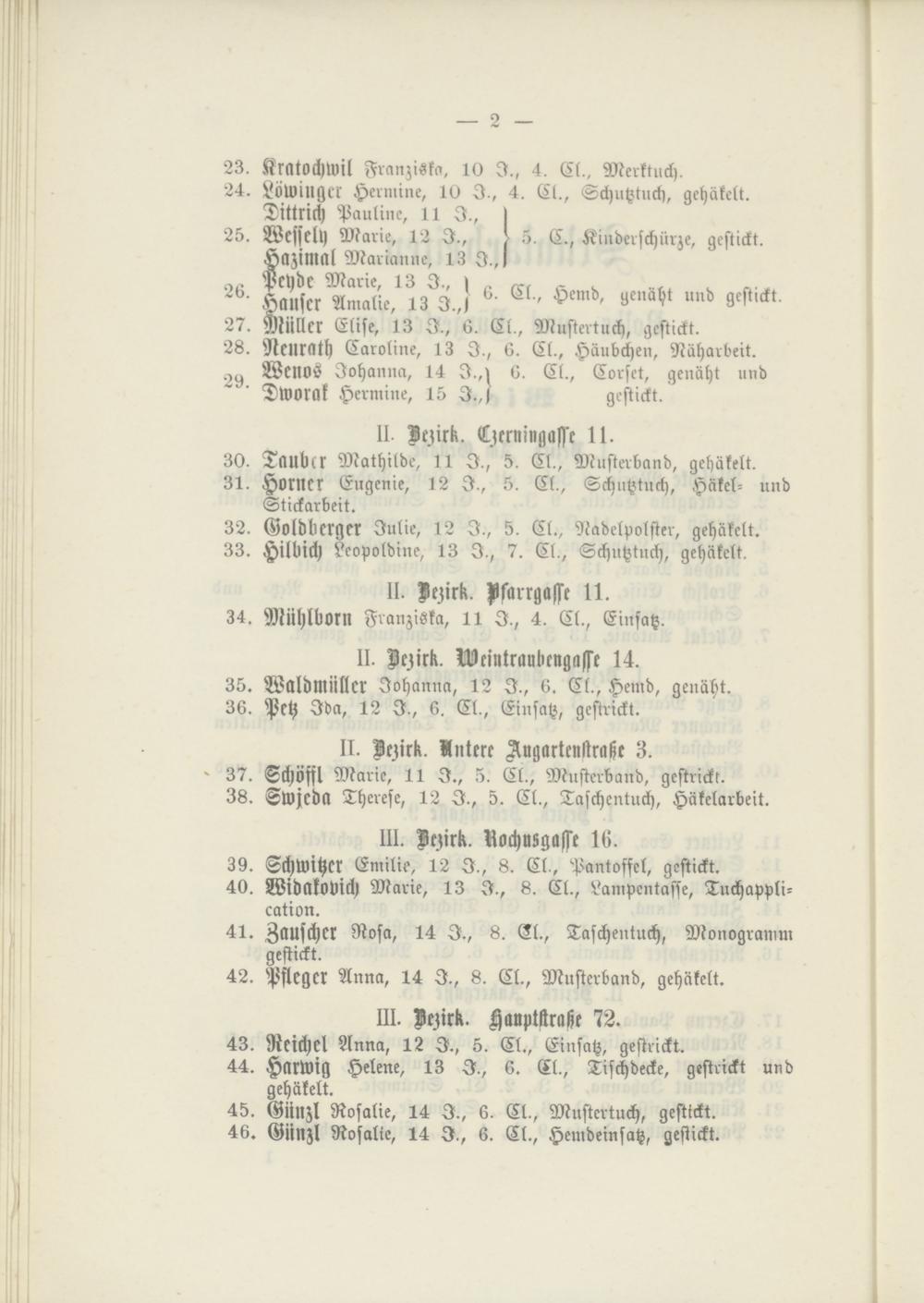 Weiws Johanna, 14 J.,^ 0. Cl., Corsct, genäht und Dworak Hermiue, 15 J.,j gestickt.