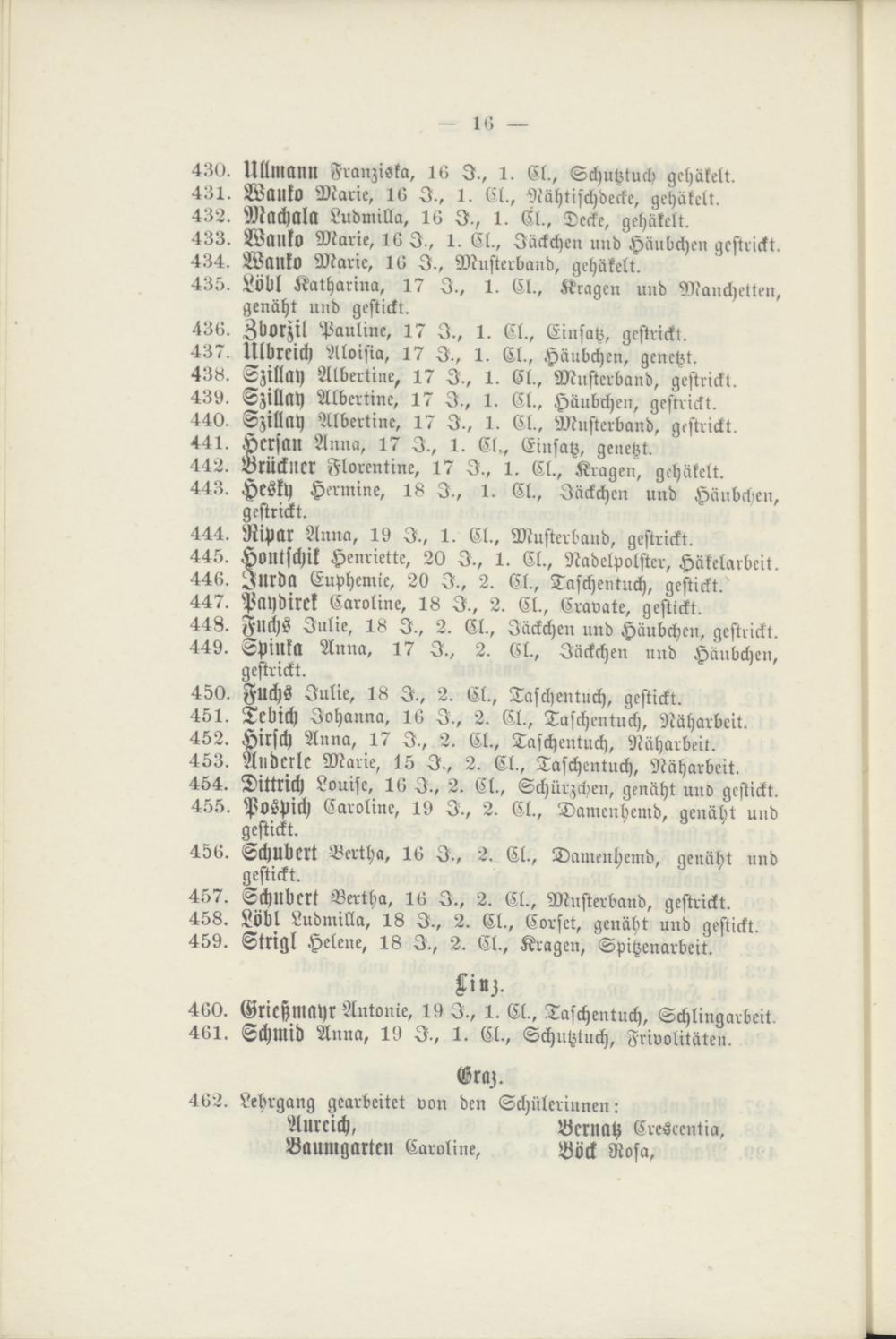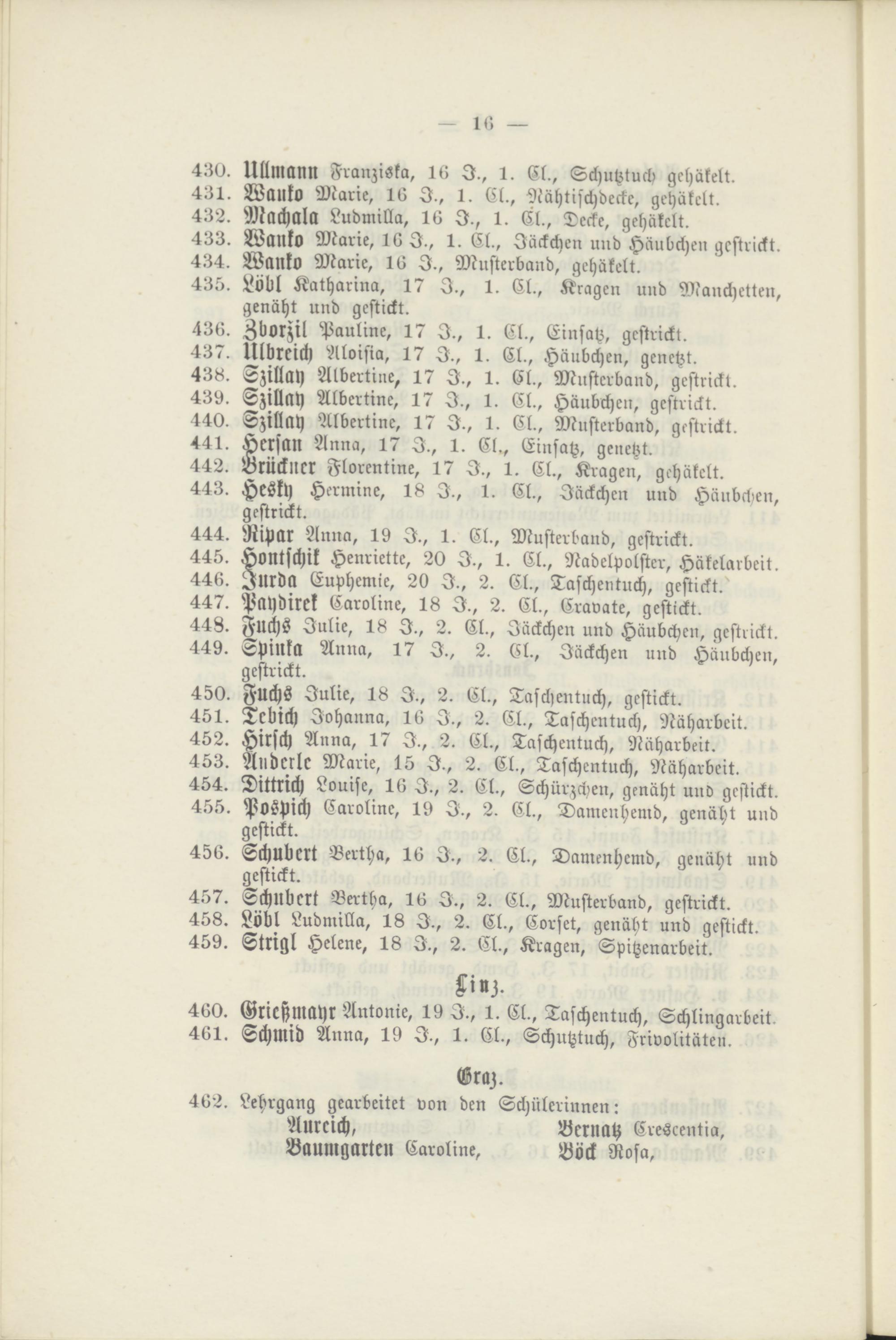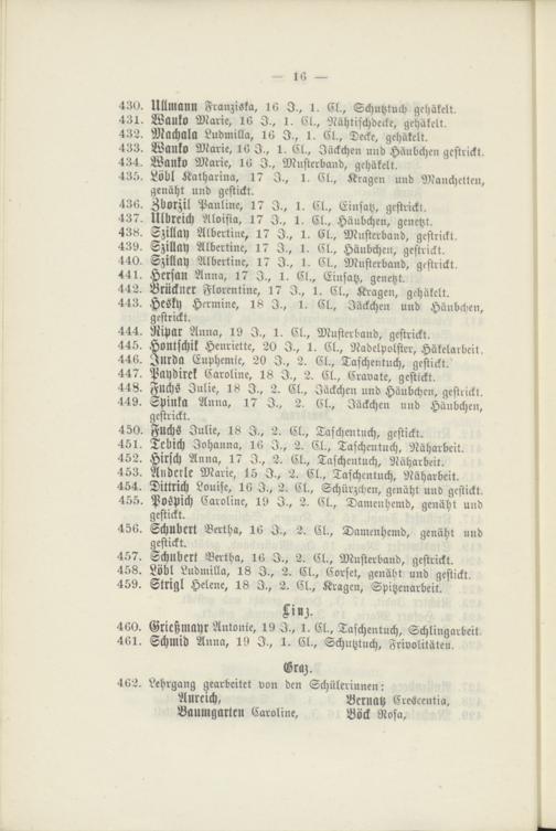 430. Ullmann Franziska, 16 I., 1. Cl., Schutzluch gehäkelt.
