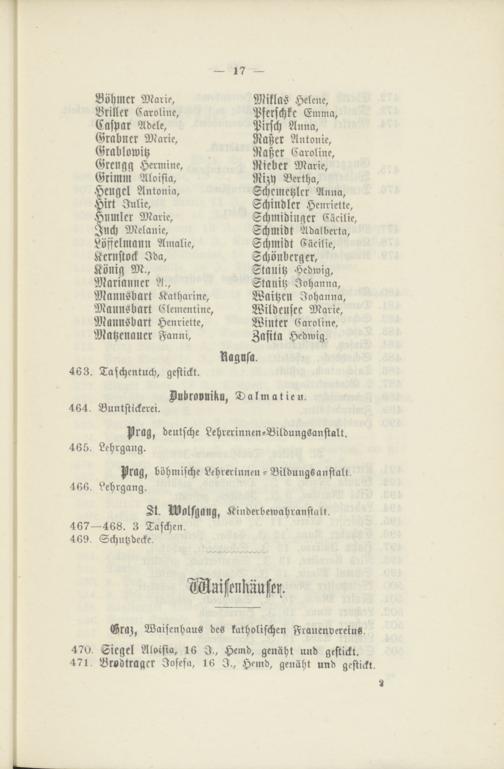 Stanitz Hedmig, Stanitz Johanna, Waitzen Johanna, Wildensec Marie, Winter Caroline, Zafita Hedwig.