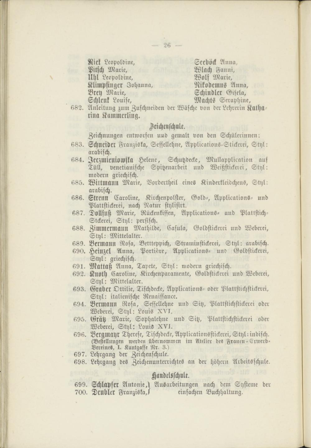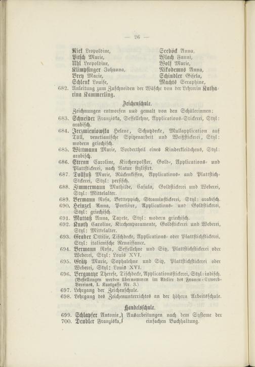 698. Lehrgang des Zeichenunterrichtes an der Hähern Arbeitsschule.