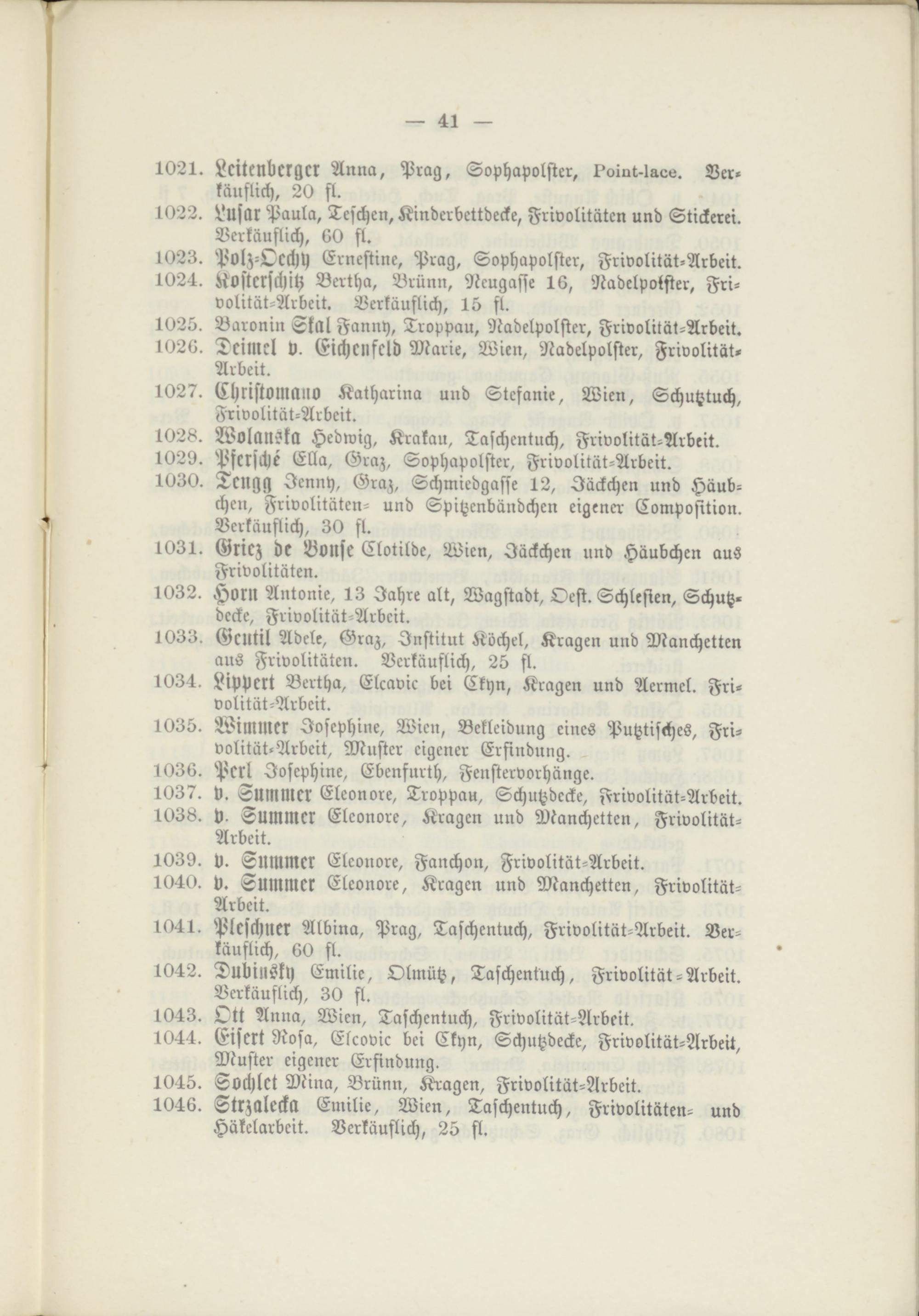 1041. Plcschner Albina, Prag, Taschentuch, Frivolität-Arbeit. Verkäuflich, 60 fl.