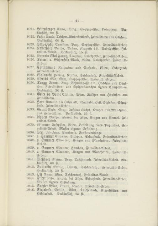 1024. Kosterfchit) Bertha, Brünn, dteugasie 16, Nadelpoifier, Frivolität-Arbeit. Berkäuflich, 15 fl.