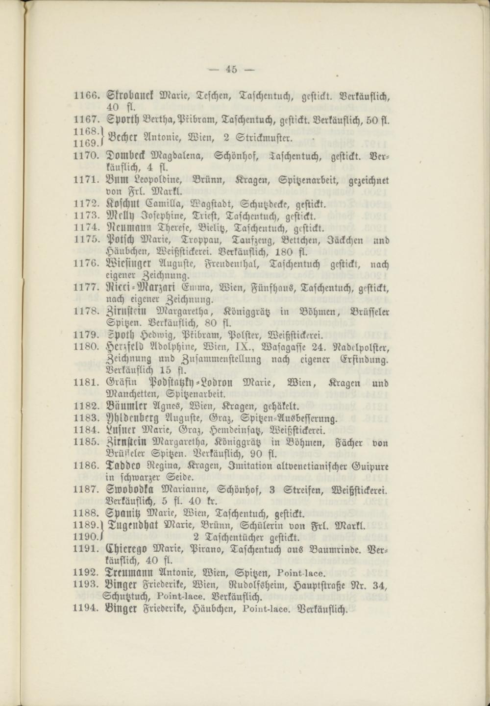 1180. Henfeld Adolphine, Wien, IX., Wasagasse 24. Nadelpolster, Zeichnung und Zusammenstellung nach eigener Erfindung. Verkäuflich 15 fl.