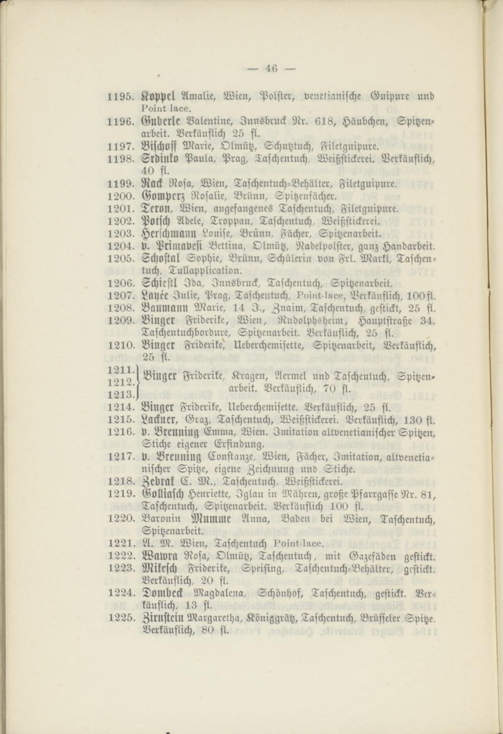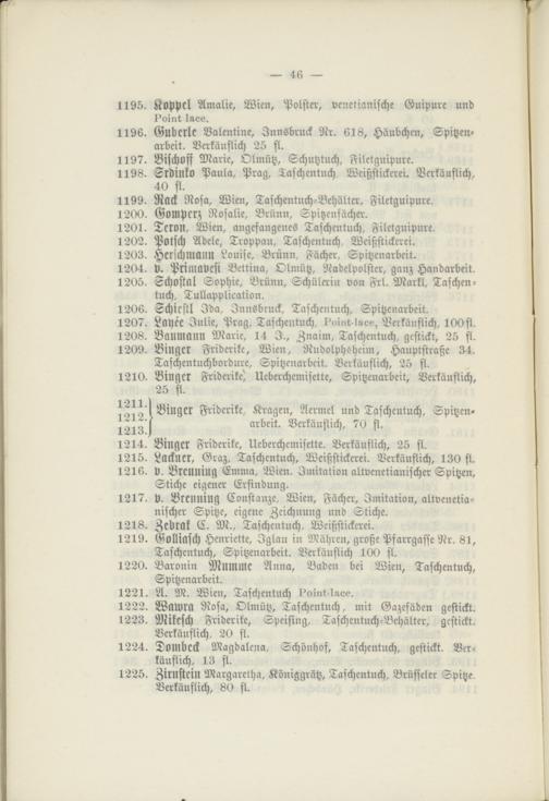 1209. Bittgcr Friderike, Wien, Rudolphsheim, Hauptstraße 34. Taschentuchbordure, Spitzenarbeit. Verkäuflich, 25 fl.
