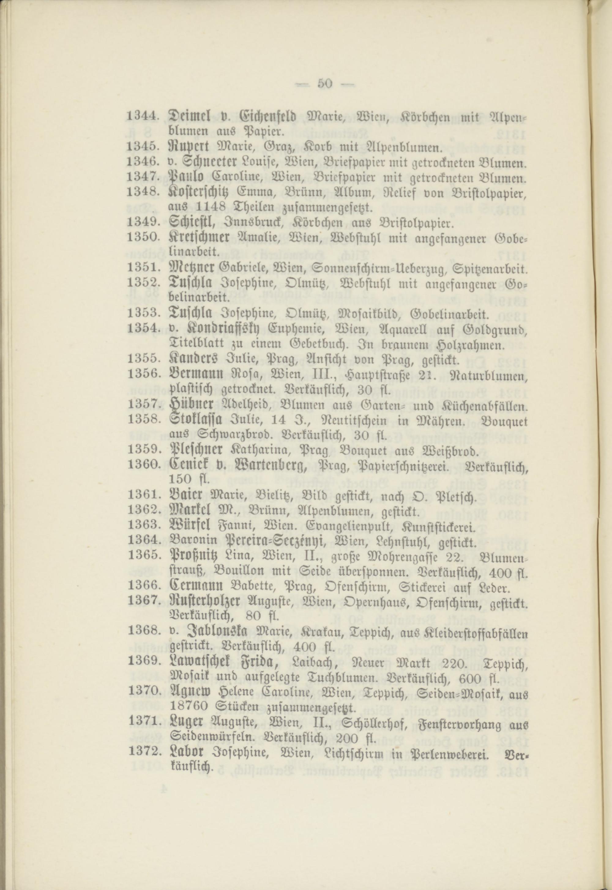 1356. Bcrmann Rosa, Wien, III., Hauptstraße 21. Naturblumen, plastisch getrocknet. Verkäuflich, 30 fl.