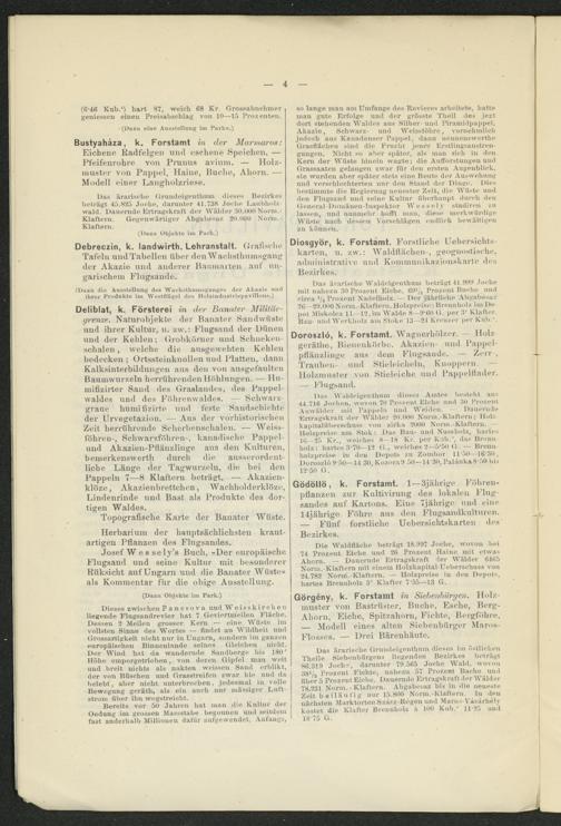 so lange man am Umfange des Revieres arbeitete, hatte man gute Erfolge und der grösste Theil des jezt dort stehenden Waldes aus Silber- und Piramidpappel, Akazie, Schwarz- und Weissföhre, vornehmlich jedoch aus Kanadenser Pappel, dann nennensvverthe Grasfiächen sind die Frucht jener Erstlingsanstrengungen. Nicht so aber später, als man sich in den Kern der Wüste hinein wagte; die Aufforstungen und Grassaaten gelangen zwar für den ersten Augenblick, sie wurden aber später stets eine Beute der Ausweitung und verschlechterten nur den Stand der Dinge. Dies bestimmte die Regierung uenester Zeit, die Wüste und den Flugsand und seine Kultur überhaupt durch den General-Domänen-Tnspektor Wessely studiren zu lassen, und nunmehr hofft man, diese merkwürdige Wüste nacli dessen Vorschlägen endlich bewältigen zu können.
