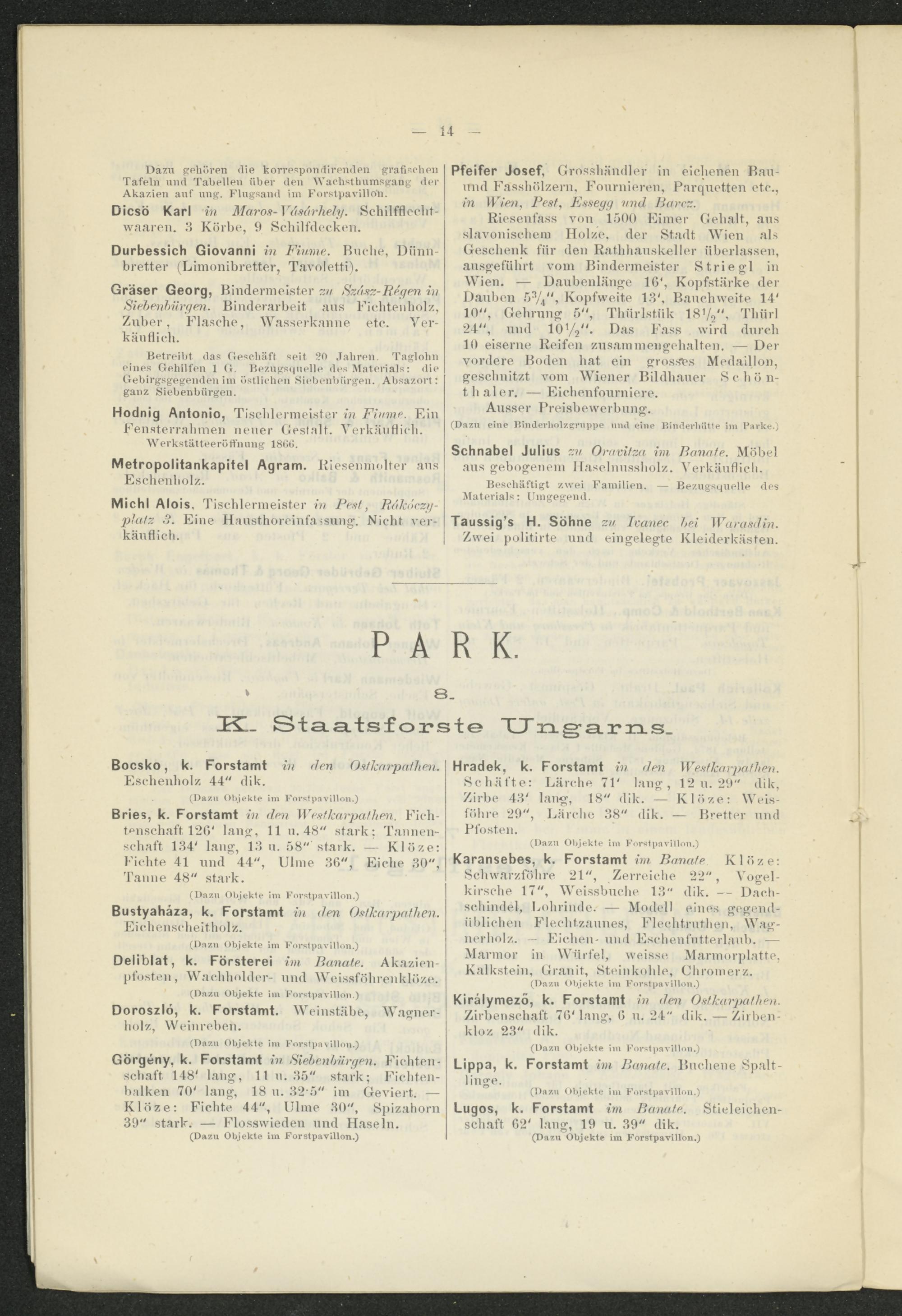 Hradek, k. Forstamt in den Westkarpathen. Schäfte: Lärche 71' lang, 12 u. 29" dik, Zirbe 43' lang, 18" dik. — Klöze: Weisföhre 29", Lärche 38" dik. —- Bretter und Pfosten.