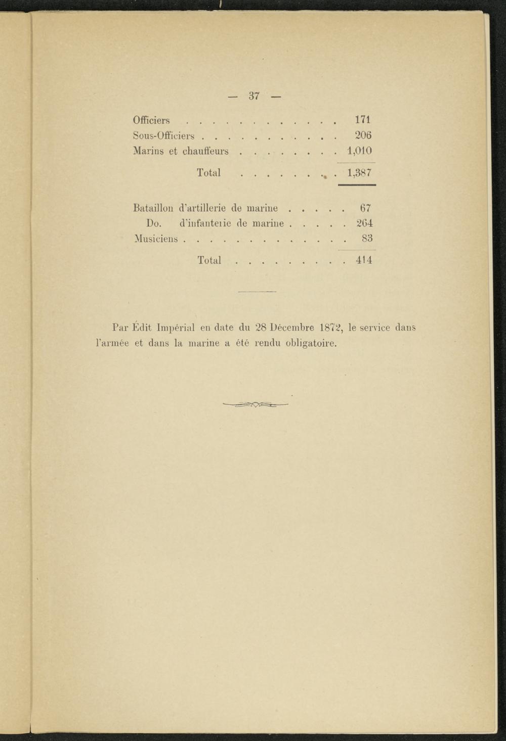 Par Edit Impérial en date du 28 Décembre 1872, le service dans l’armée et dans la marine a été rendu obligatoire.