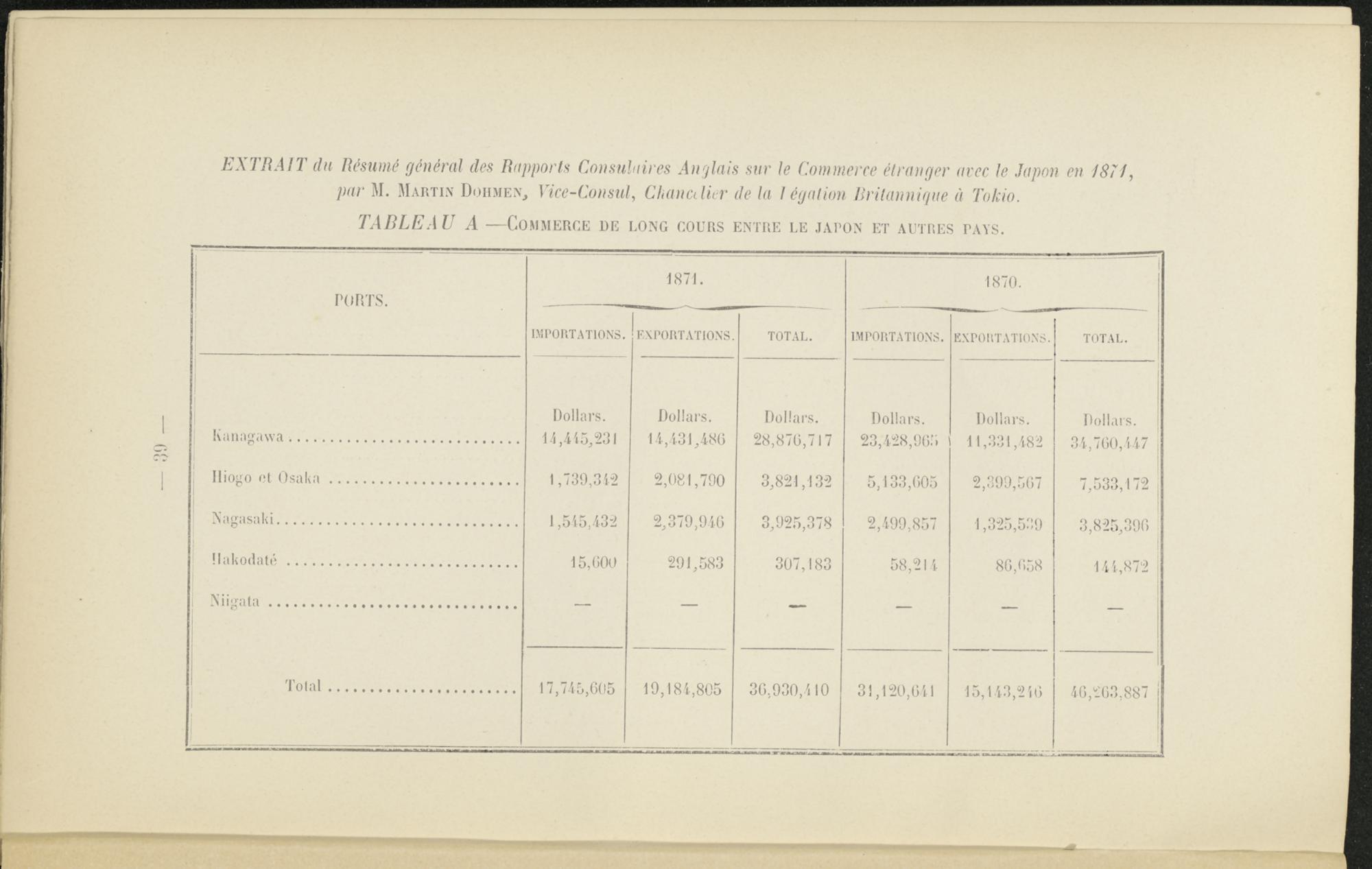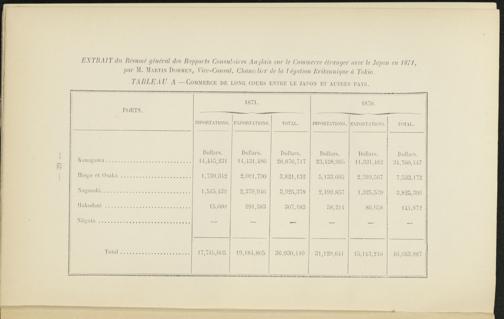 EXTRAIT du Résumé général des Rapports Consulaires Anglais sur le Commerce étranger avec le Japon en 1871, par M. Martin Dohmen, Vice-Consul, Chancdier de la l égal ion Britannique à Tokio.