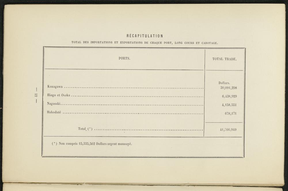 TOTAL DES IMPORTATIONS ET EXPORTATIONS DE CHAQUE PORT, LONG COURS ET CABOTAGE.