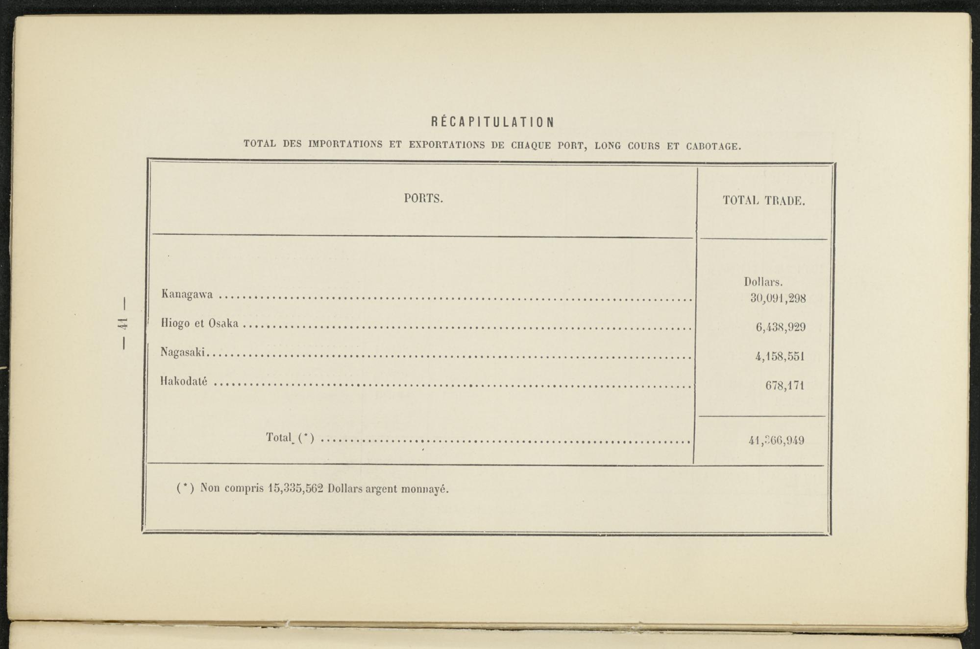 (*) Non compris 15,335,562 Dollars argent monnayé.