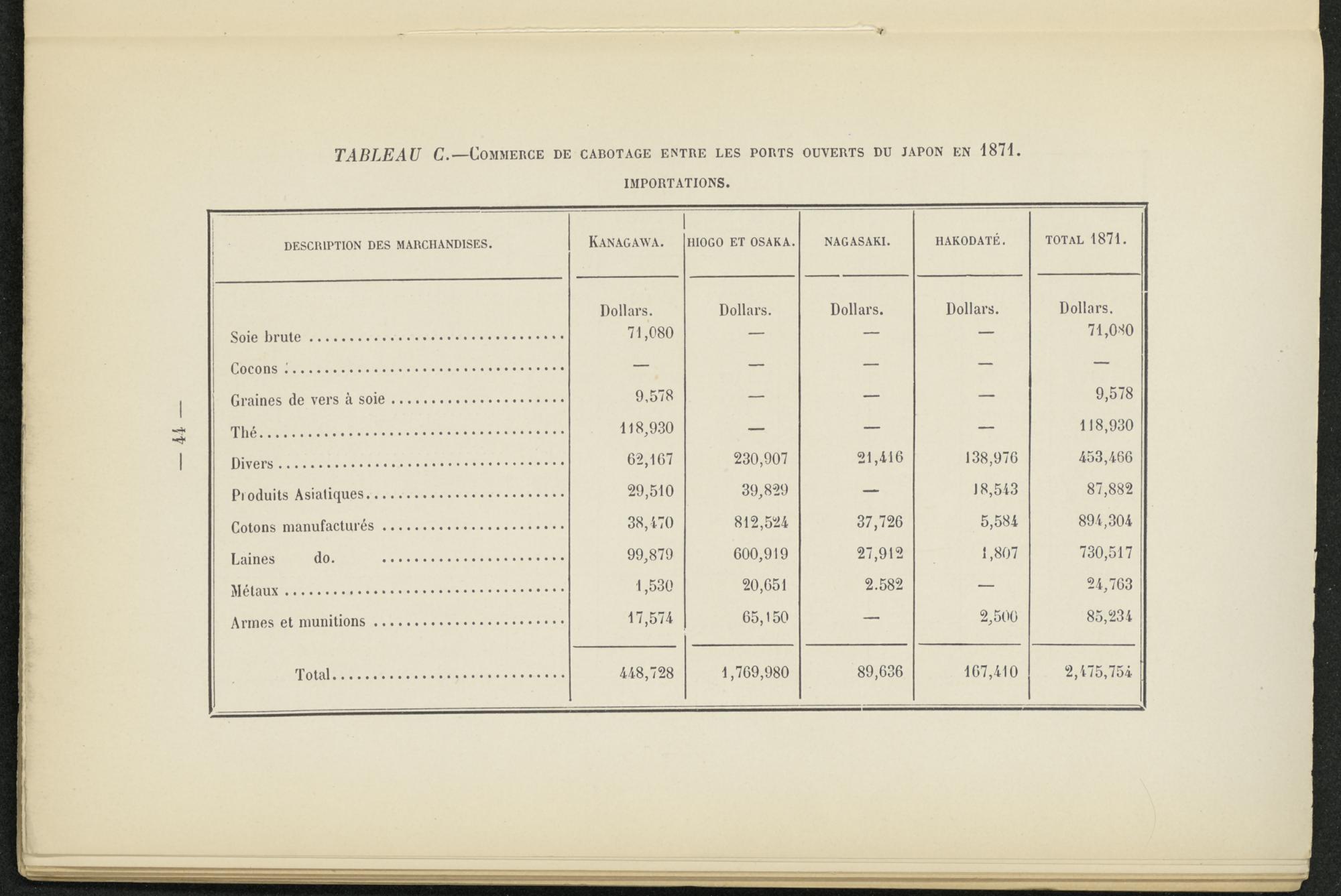 TABLEAU C. —Commerce de cabotage entre les ports ouverts du japon en 1871