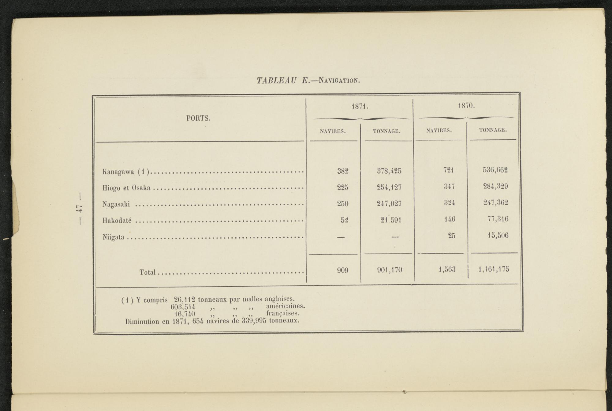 Diminution en 1871, 654 navires de 339,995 tonneaux.