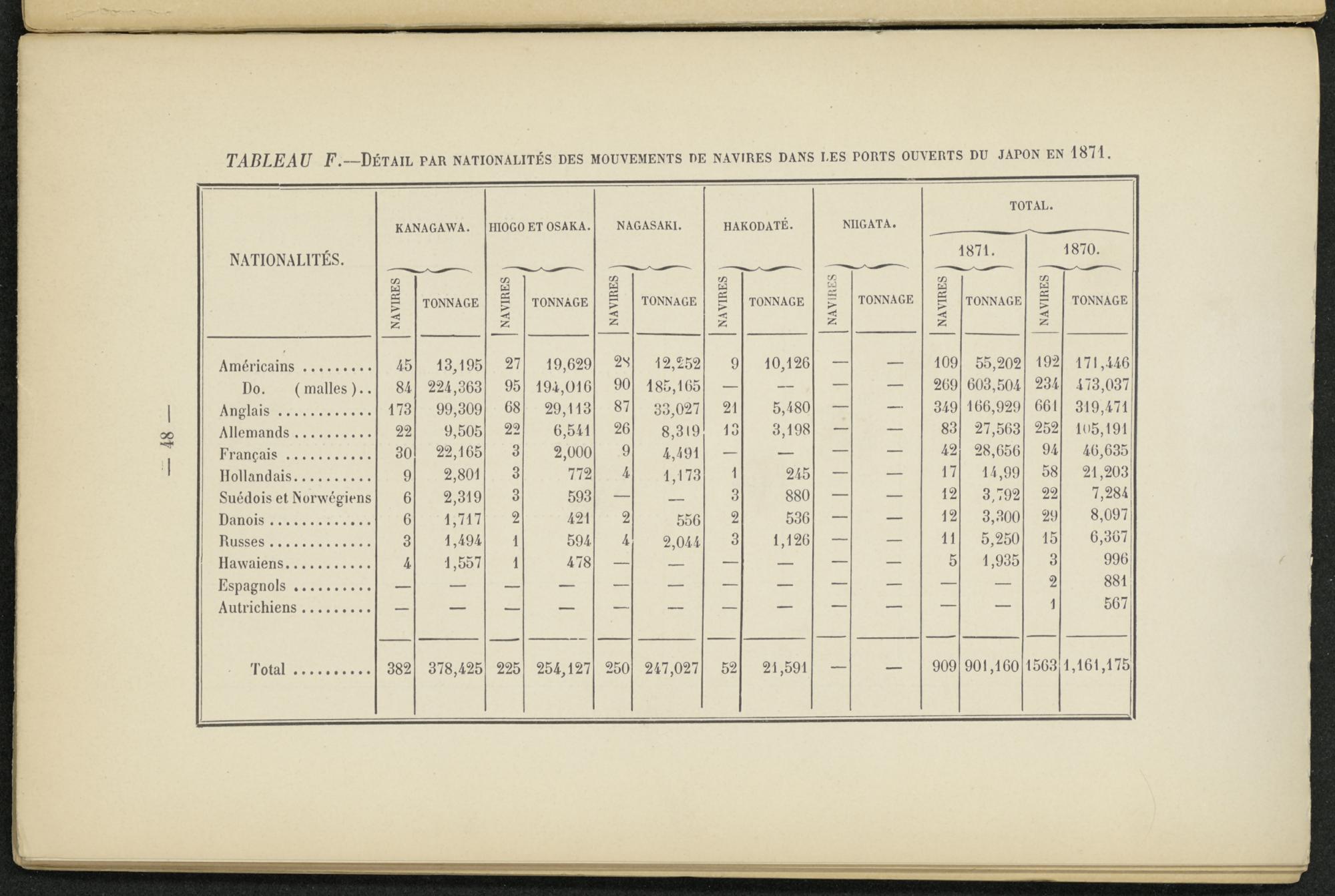 TABLEAU F. —Détail par nationalités des mouvements de navires dans les ports ouverts du japon en 1871.