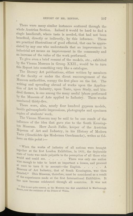 The Vienna Museum may be said to be one result of the influence of the idea that gave rise to the South Kensington Museum. Herr Jacob Falke, keeper of the Austrian Museum of Art and Industry, in his History of Modern haste (Geschichte d£s Modernen Geschmacks), writes as follows on this point:—