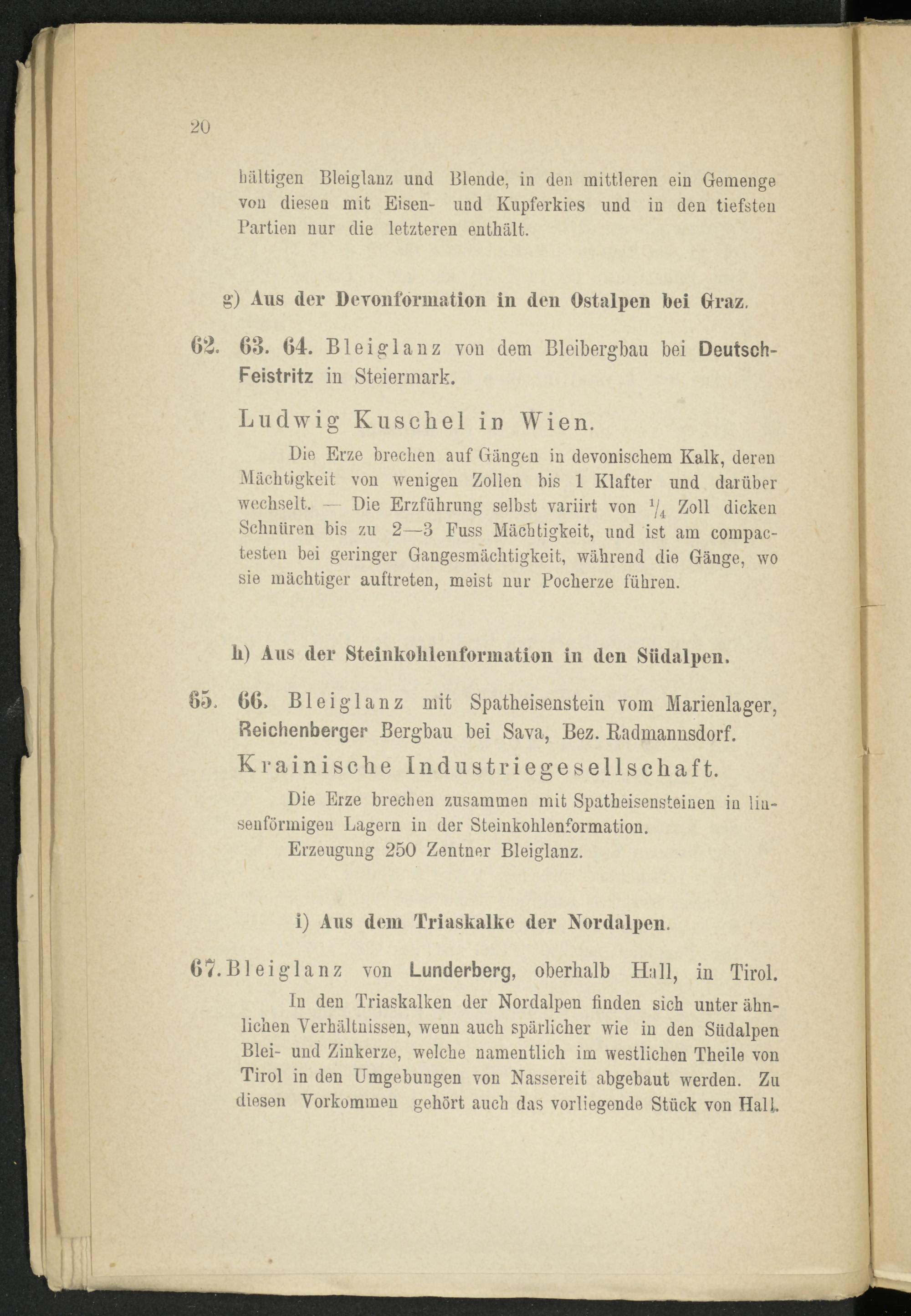 In den Triaskalken der Nordalpen finden sich unter ähnlichen Verhältnissen, wenn auch spärlicher wie in den Südalpen Blei- und Zinkerze, welche namentlich im westlichen Theile von Tirol in den Umgehungen von Nassereit abgebaut werden. Zu diesen Vorkommen gehört auch das vorliegende Stück von Hall