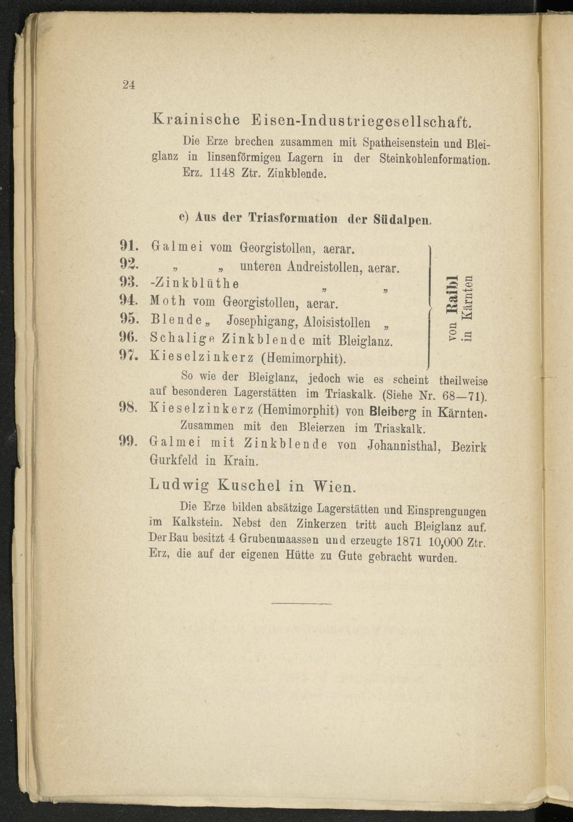 So wie der Bleiglanz, jedoch wie es scheint theilweise auf besonderen Lagerstätten im Triaskalk. (Siehe Nr. 68—71).