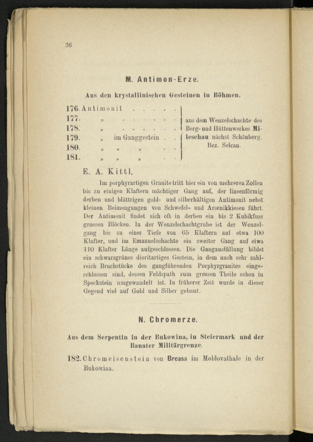 Aus dem Serpentin in der Bukowina, in Steiermark und der Banater Militärgrenze.