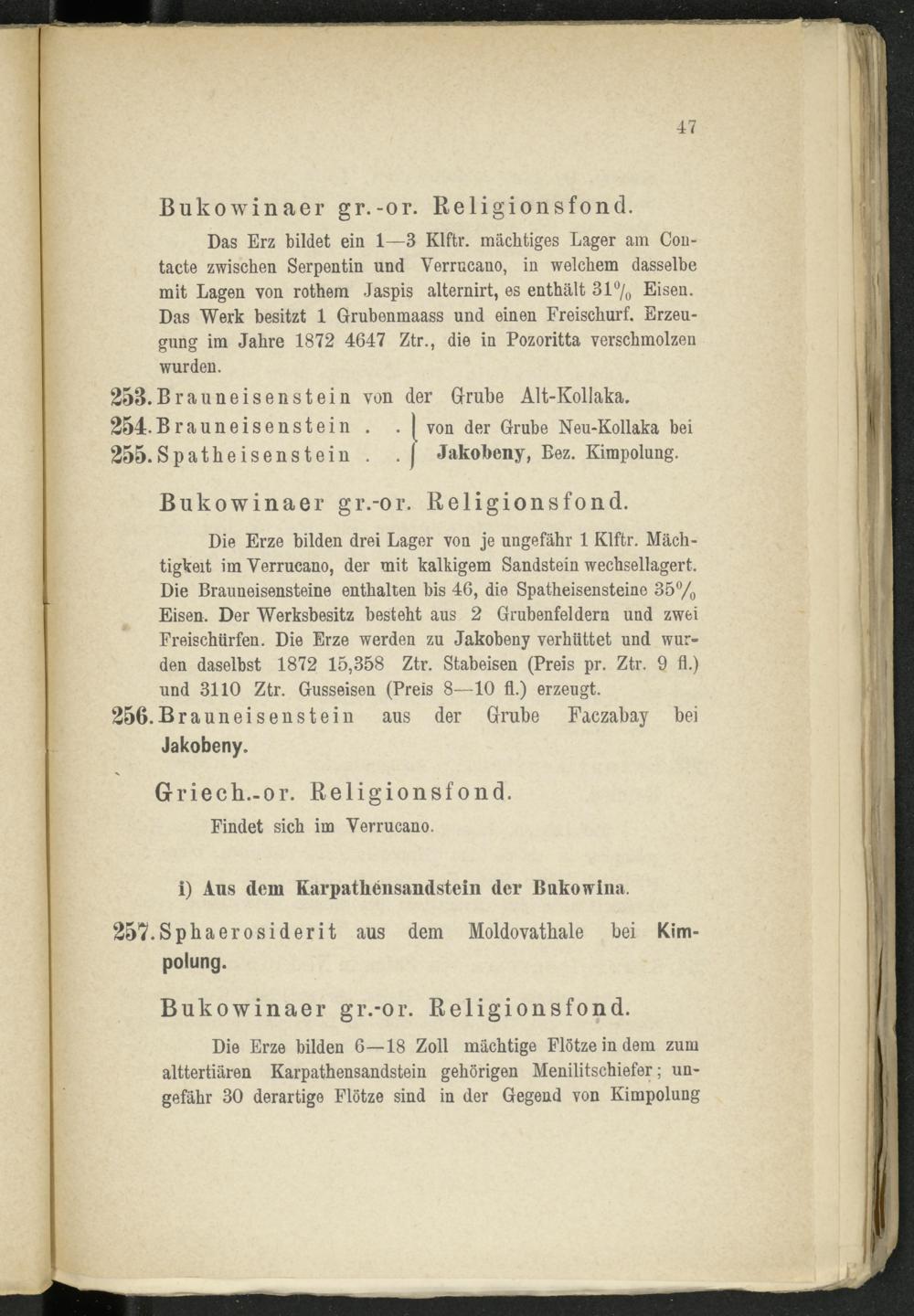 258. Brauneis enstein von der Grube Alt-Kollaka. 254.Brauneisenstein . . 1 von der Grube Neu-Kollaka bei