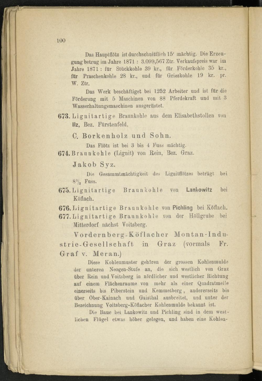 Vo r de rnberg-Kö flacher Montan-Indu- strie-Gesellschaft in Graz (vormals Fr. Graf v. Meran.)