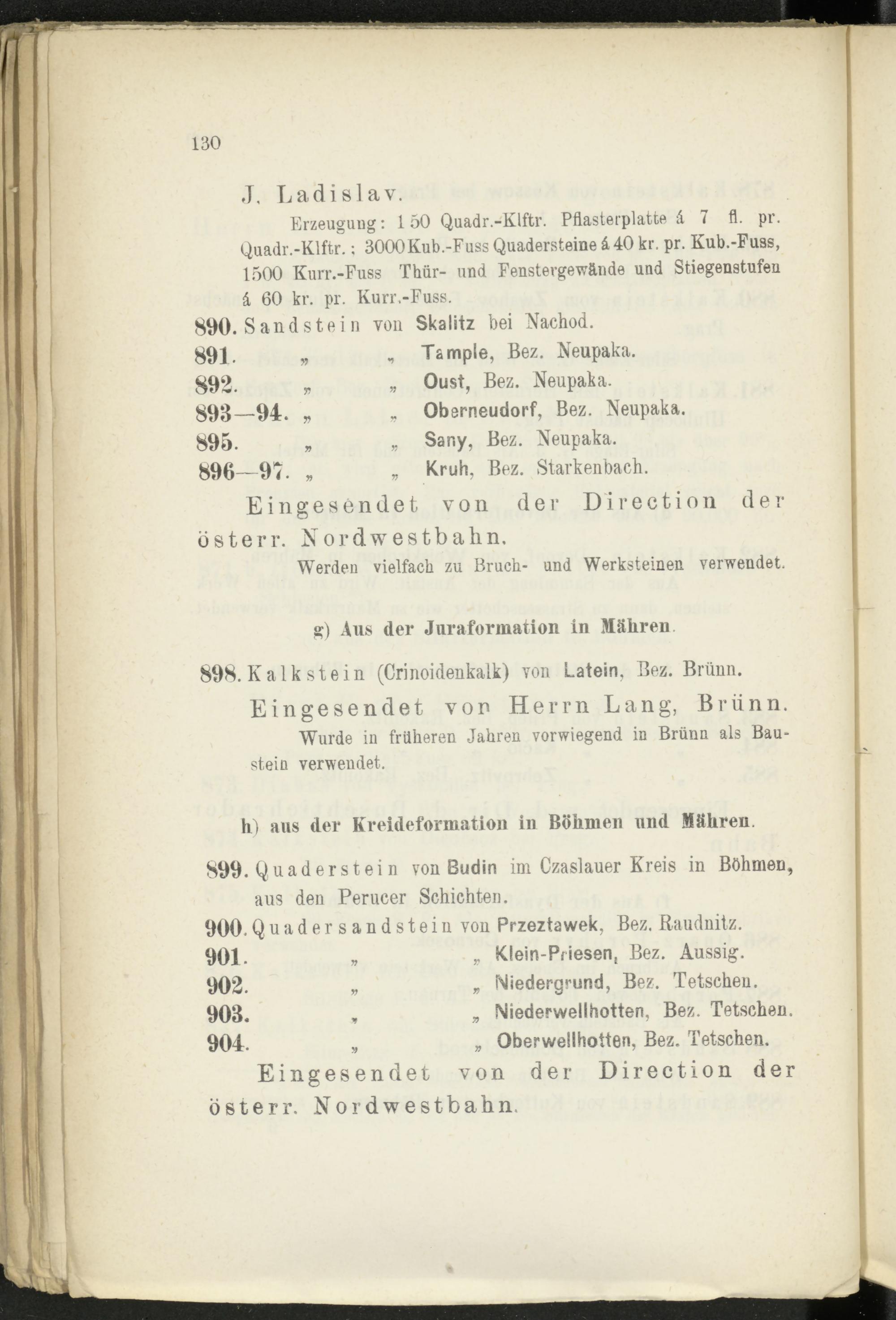 898. Kalk stein (Crinoidenkalk) von Latein, Bez. Brünn.