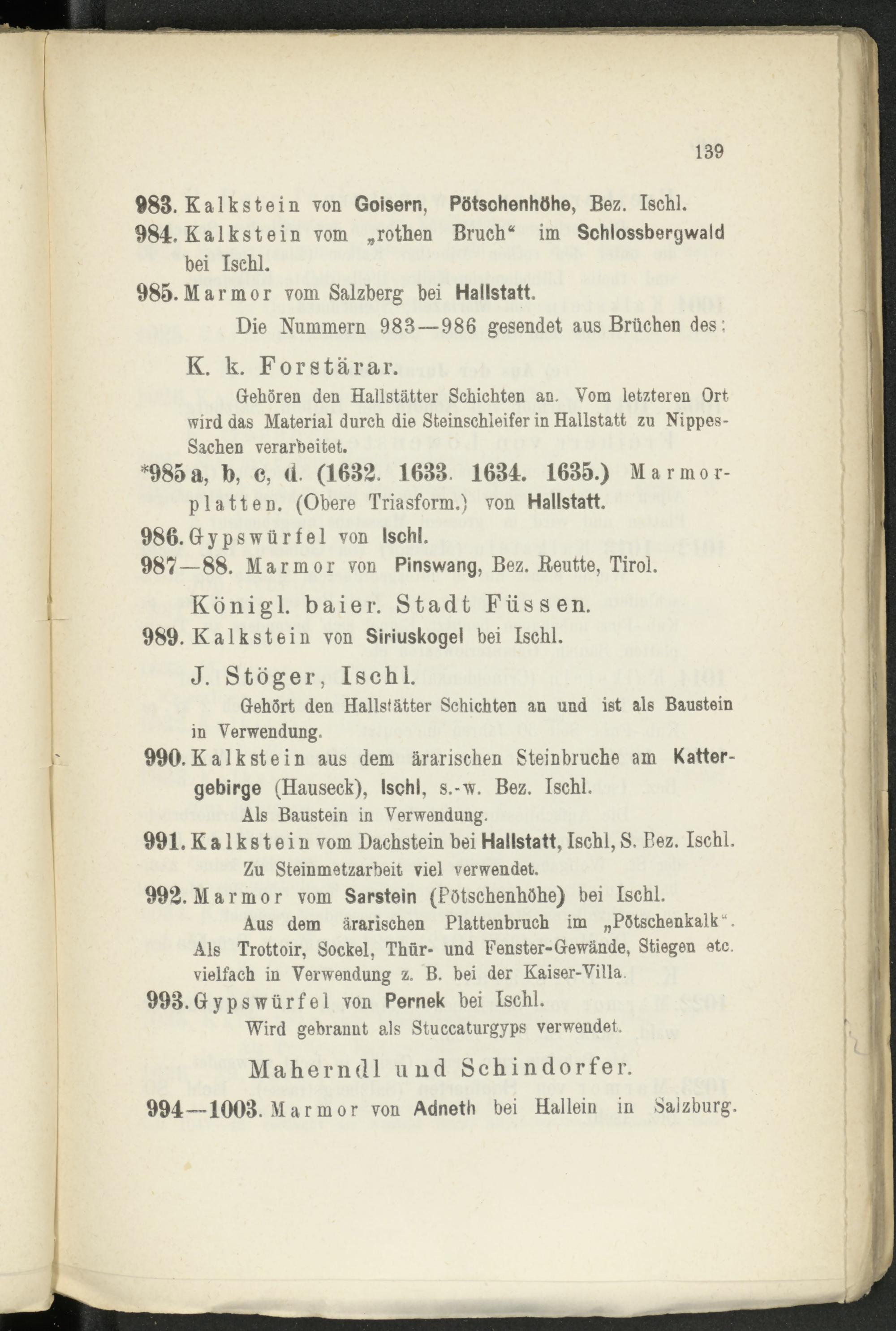 990. Kalkstein aus dem ärarischen Steinbruche am Katter- gebirge (Hauseck), Ischl, s.-w. Bez. Ischl.