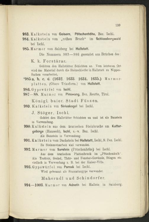 Gehören den Hallstätter Schichten an. Vom letzteren Ort wird das Material durch die Steinschleifer in Hallstatt zu Nippes- Sachen verarbeitet.