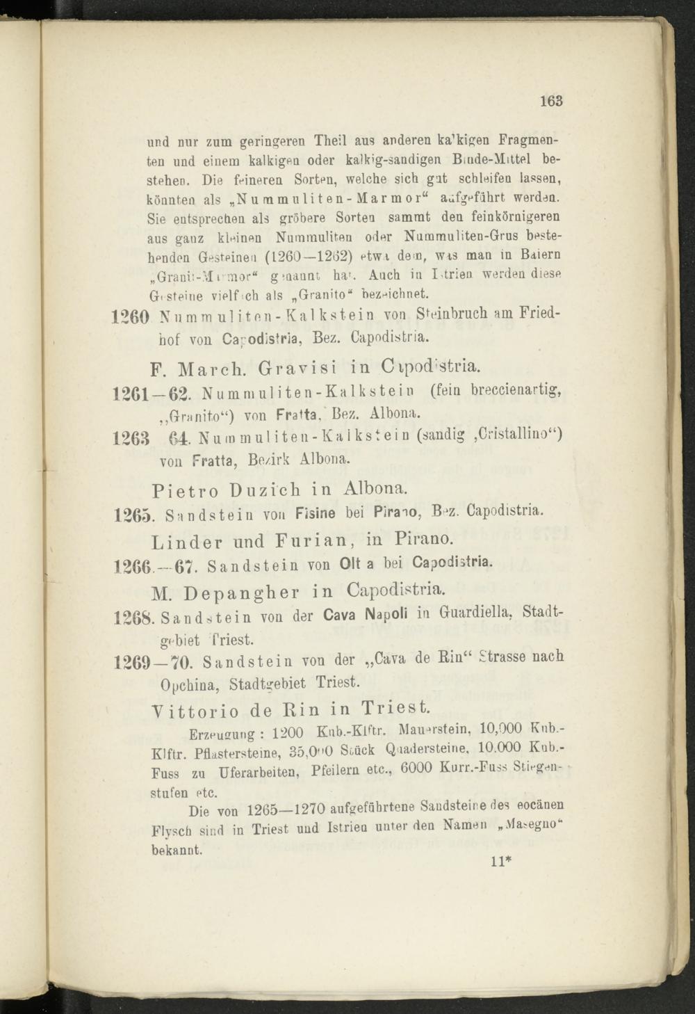 1261-62. Numm ul iten-Kalk stein (fein breccienartig, „Gmnito“) von Fratta,' Bez. Albona.