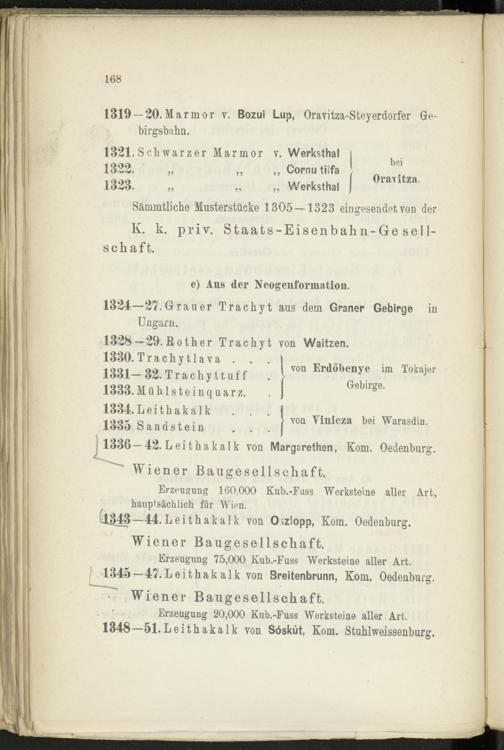 Erzeugung 160,000 Kub.-Fuss Werksteine aller Art, hauptsächlich für Wien.