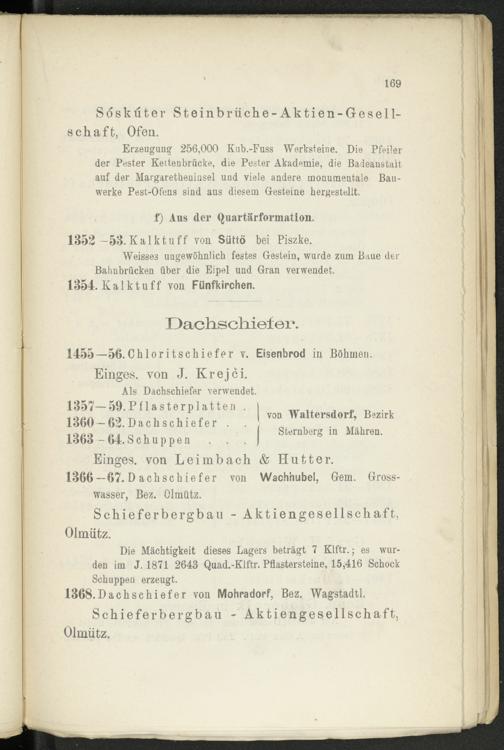 Die Mächtigkeit dieses Lagers beträgt 7 Klftr.; es wurden im J. 1871 2643 Quad.-Klftr. Pflastersteine, 15,416 Schock Schuppen erzeugt.
