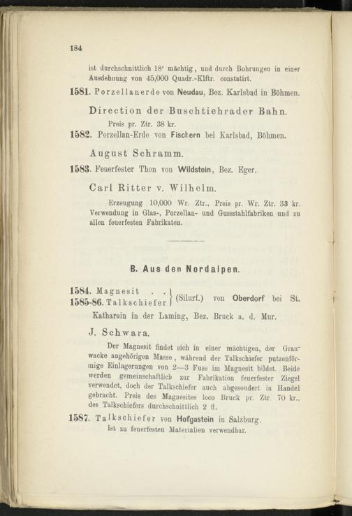 1584. Magnesit . . 1 1585-86. Talkschiefer J * 1 ur ''