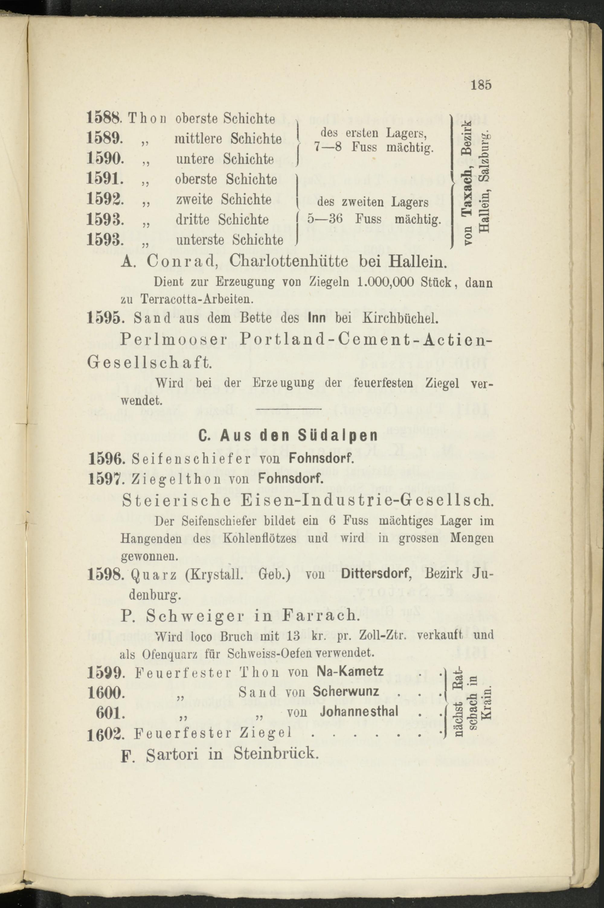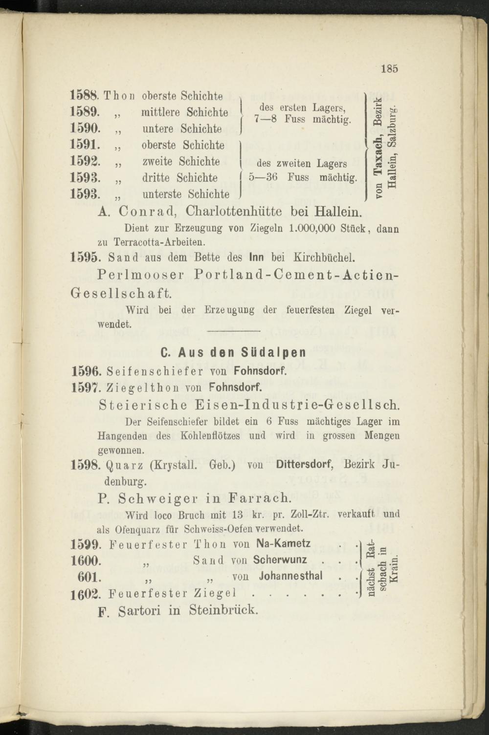 Wird loco Bruch mit 13 kr. pr. Zoll-Ztr. als Ofenquarz für Schweiss-Oefen verwendet.
