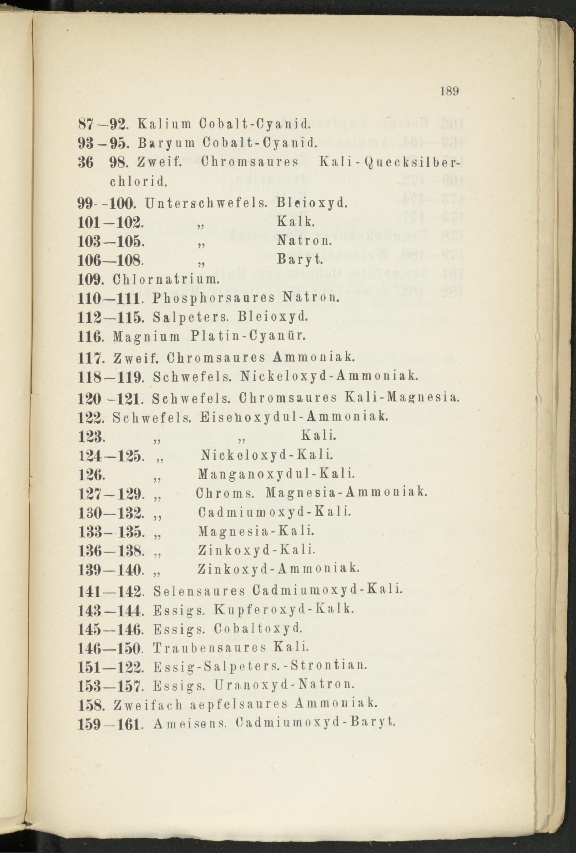158. Zweifach aepfelsaures Ammoniak. 159-161. A m e i se n s. C a d m i u m o x y d - B a r y t.