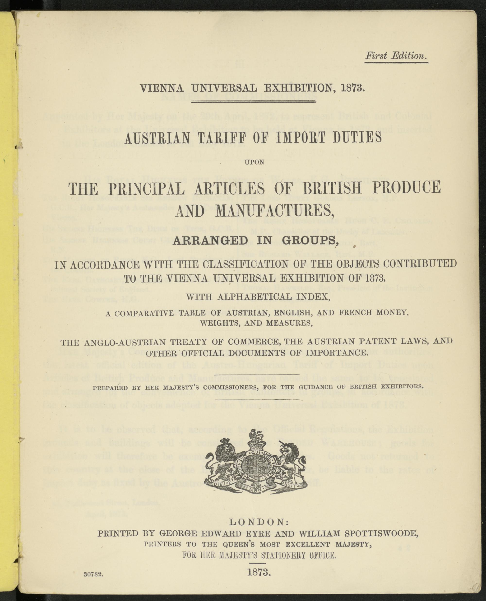 AUSTRIAN TARIFF OF IMPORT DUTIES